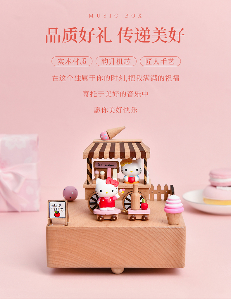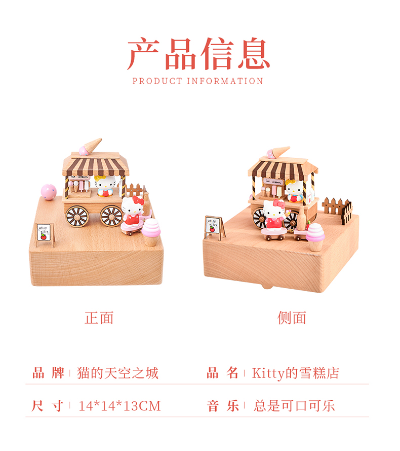猫的天空之城八音盒《Kitty的雪糕店》木质卡通女生音乐盒机械生日礼物
