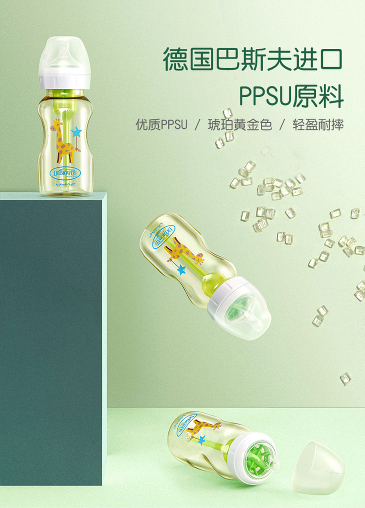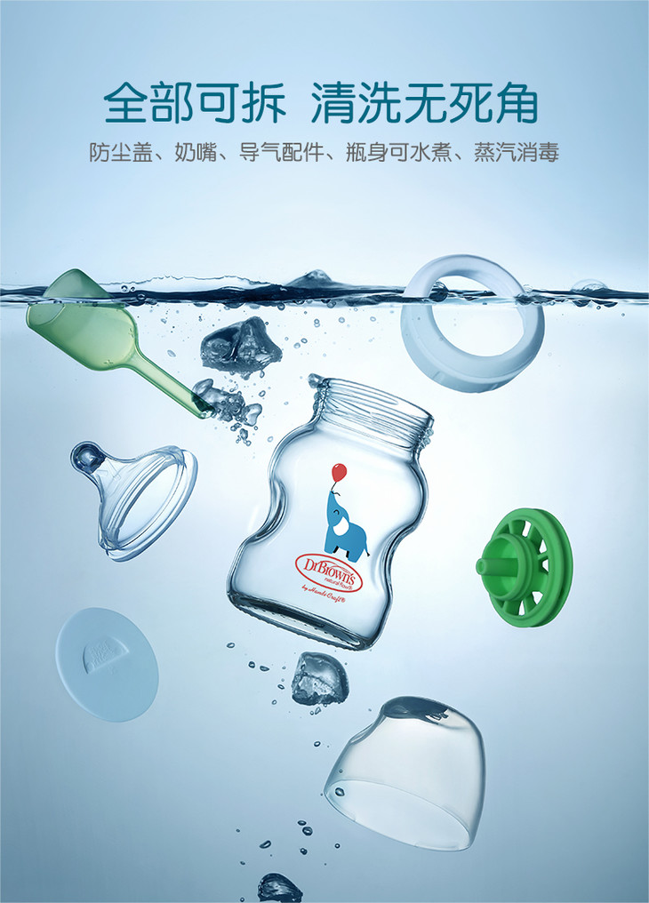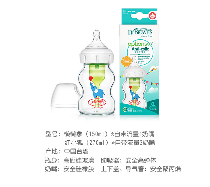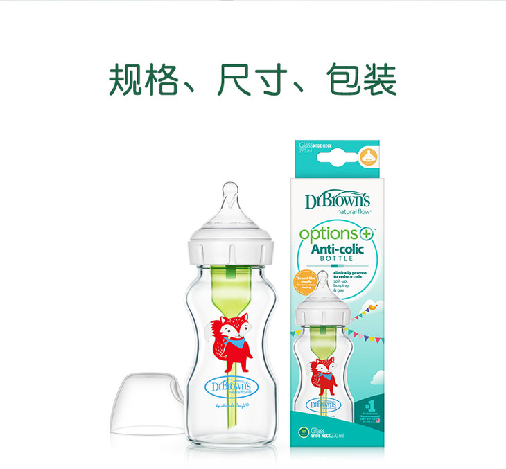 布朗博士9安士玻璃宽口婴儿奶瓶(狐狸,配流量3奶嘴)