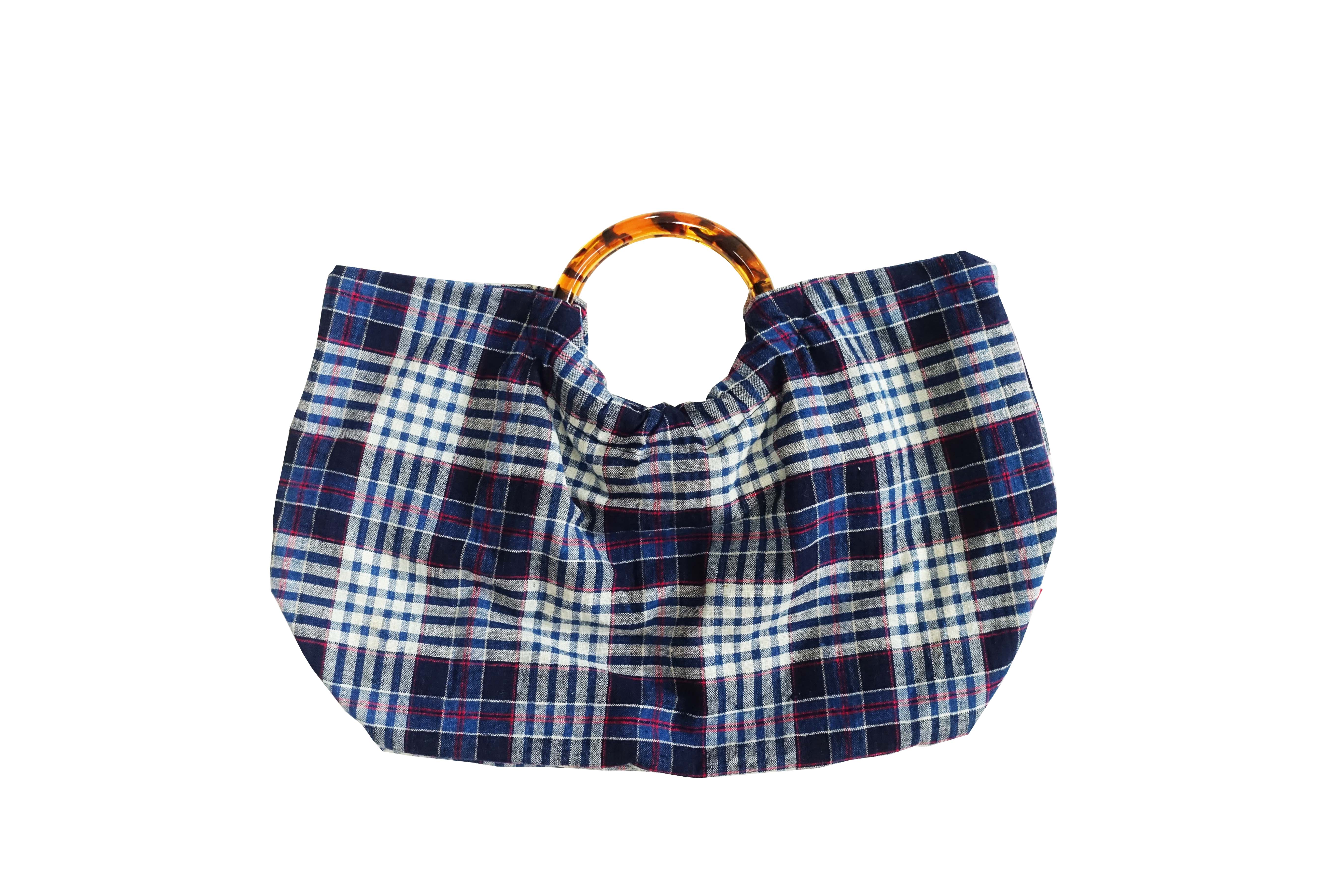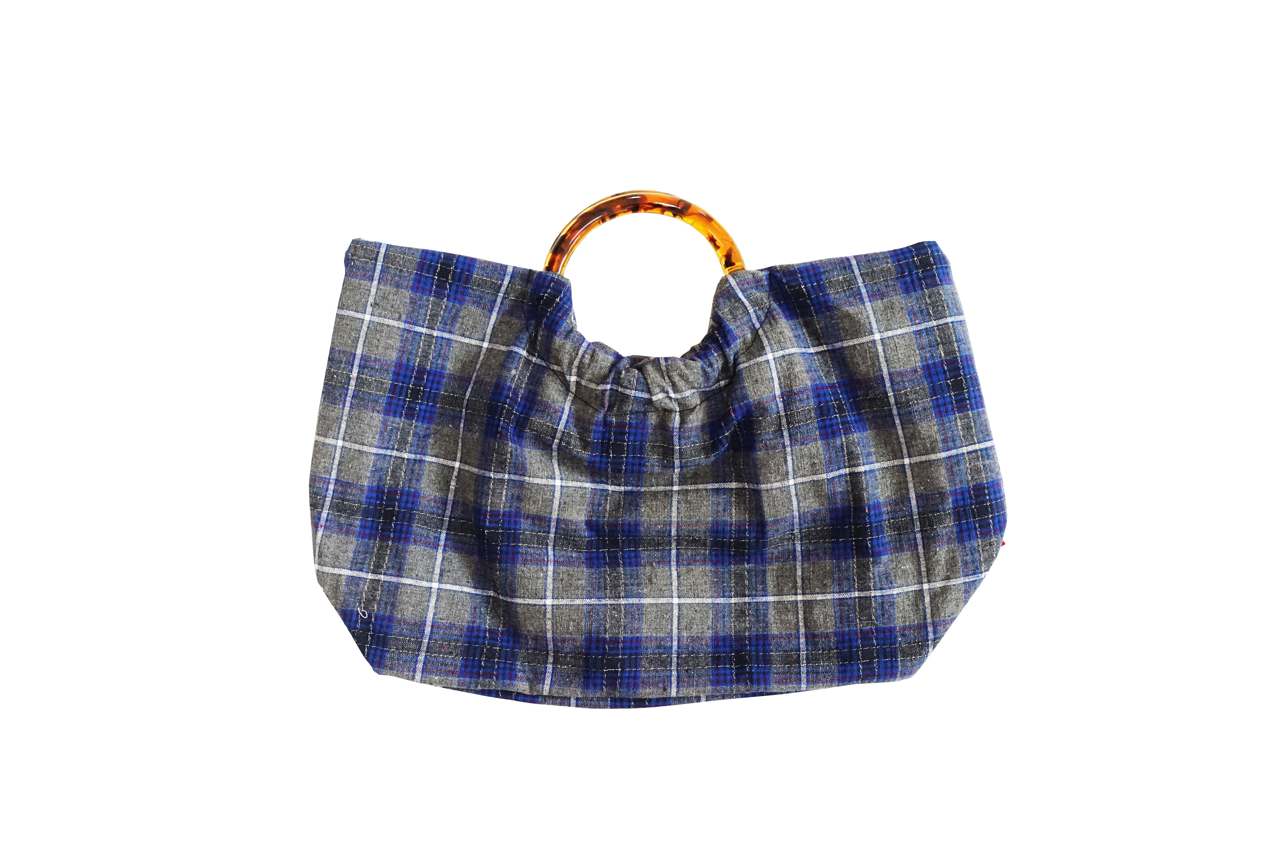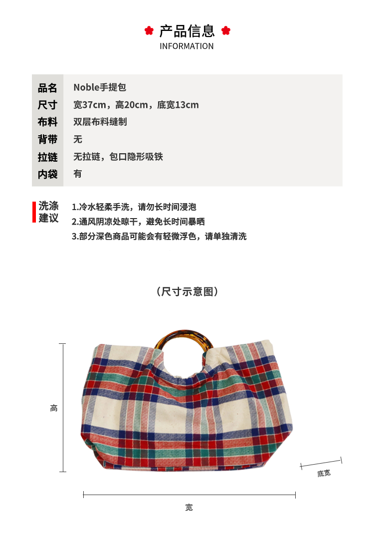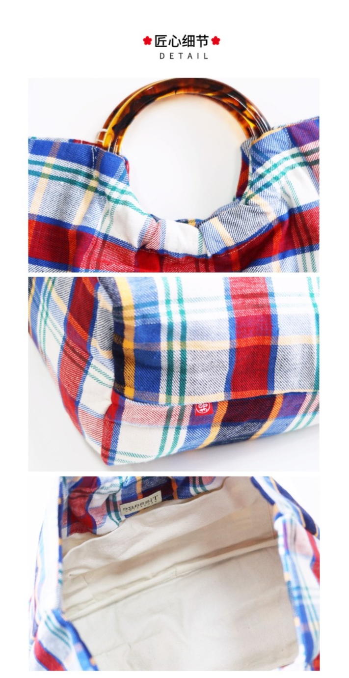 HUJI祤集Noble手提包老布TISSAGE格纹手织布