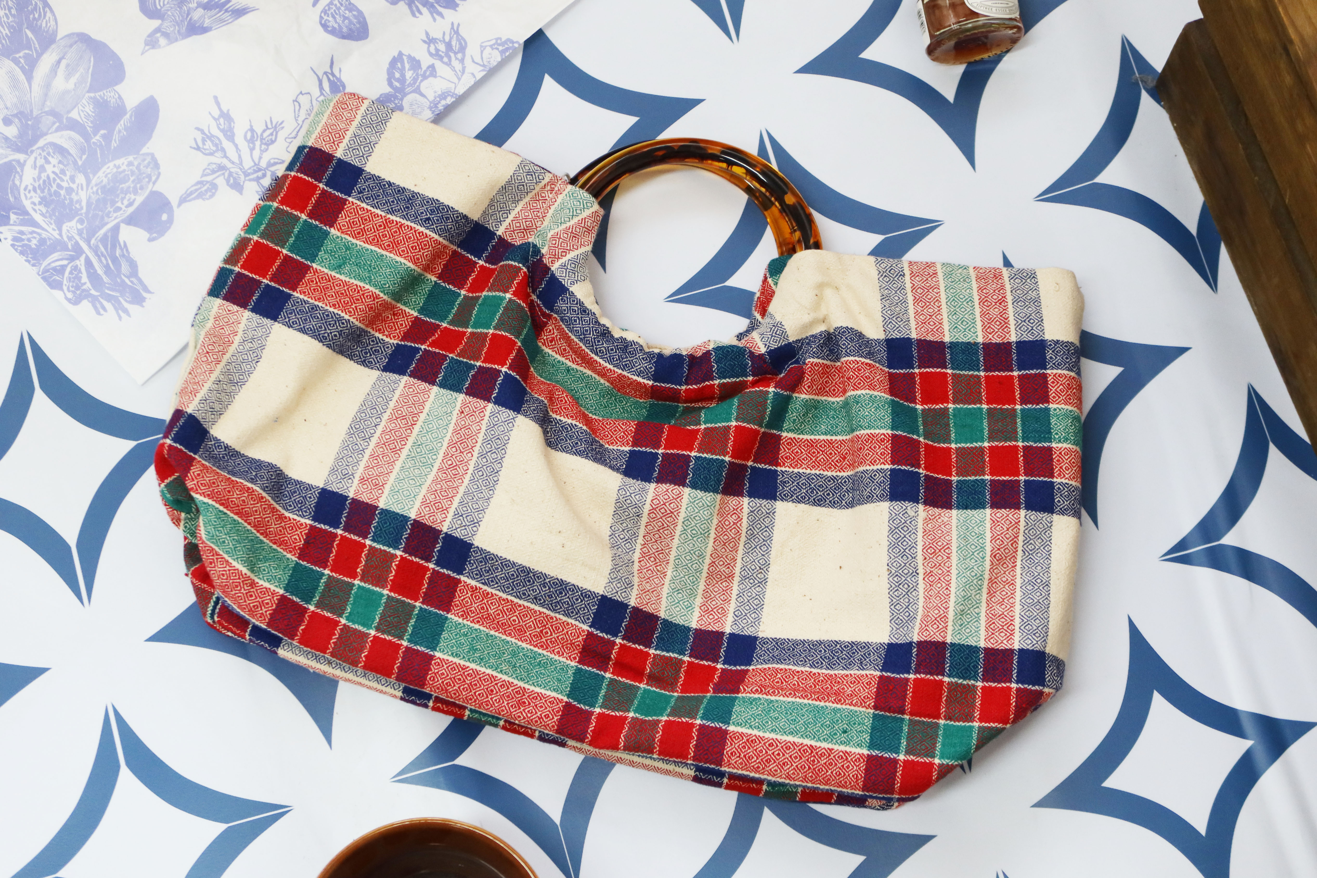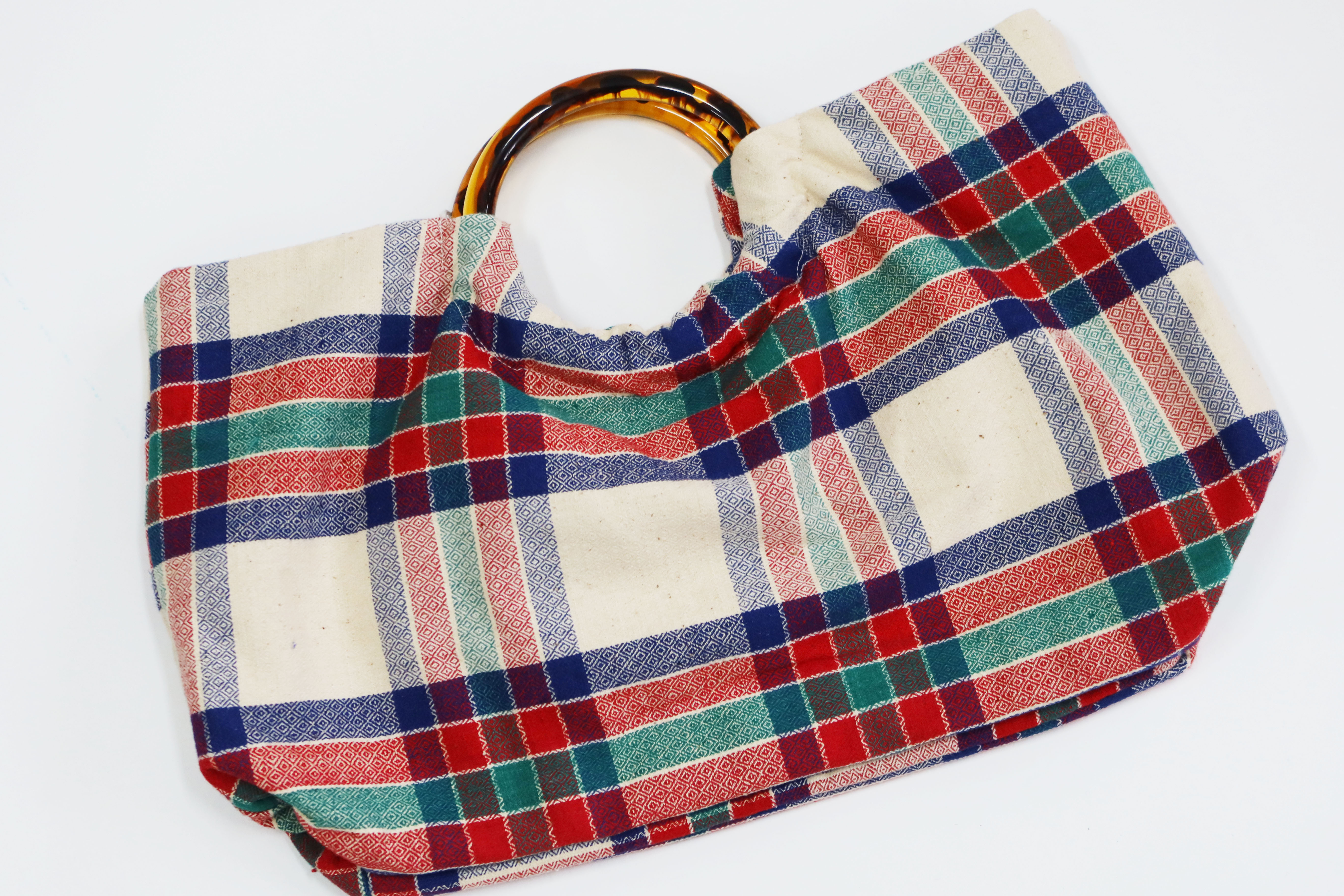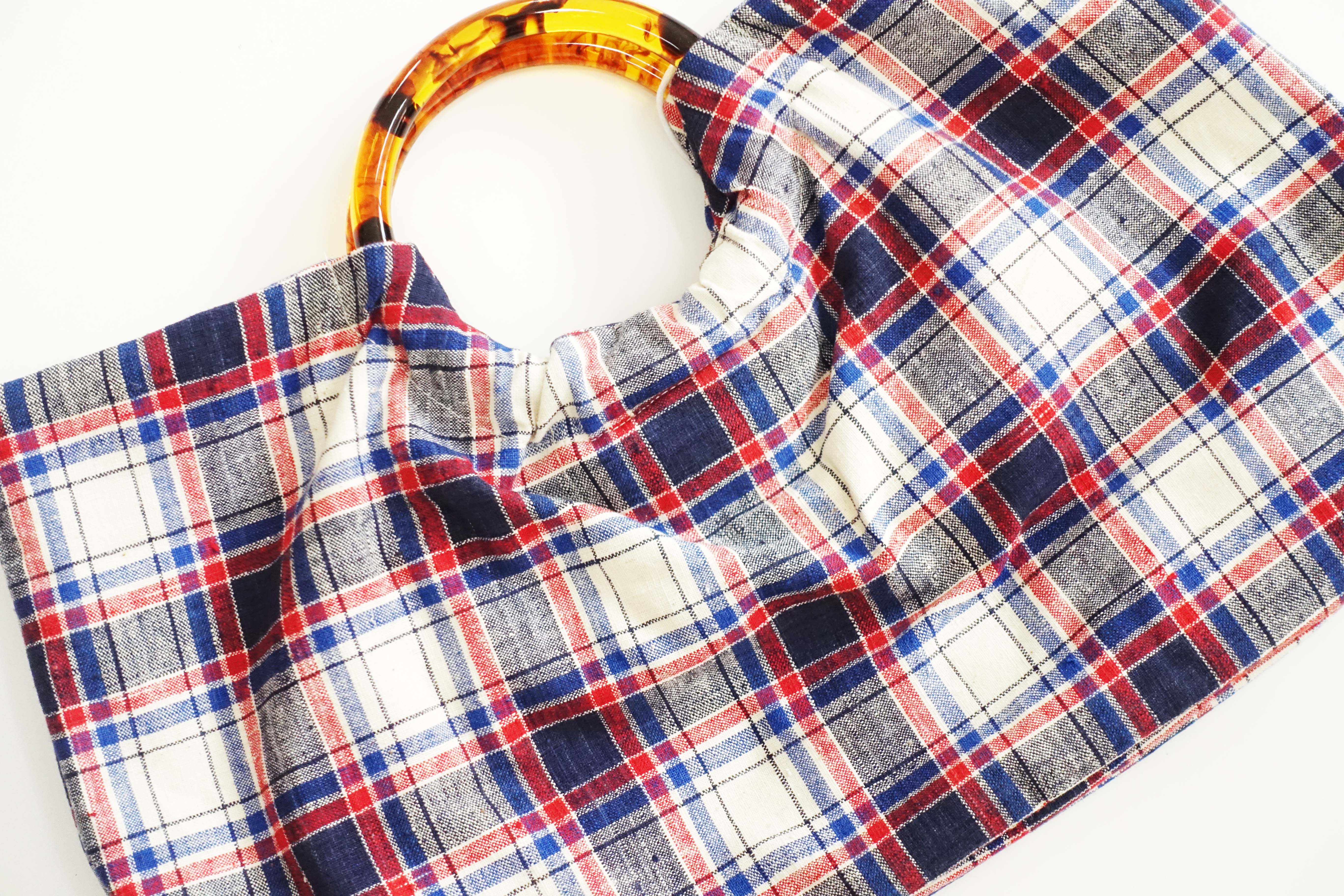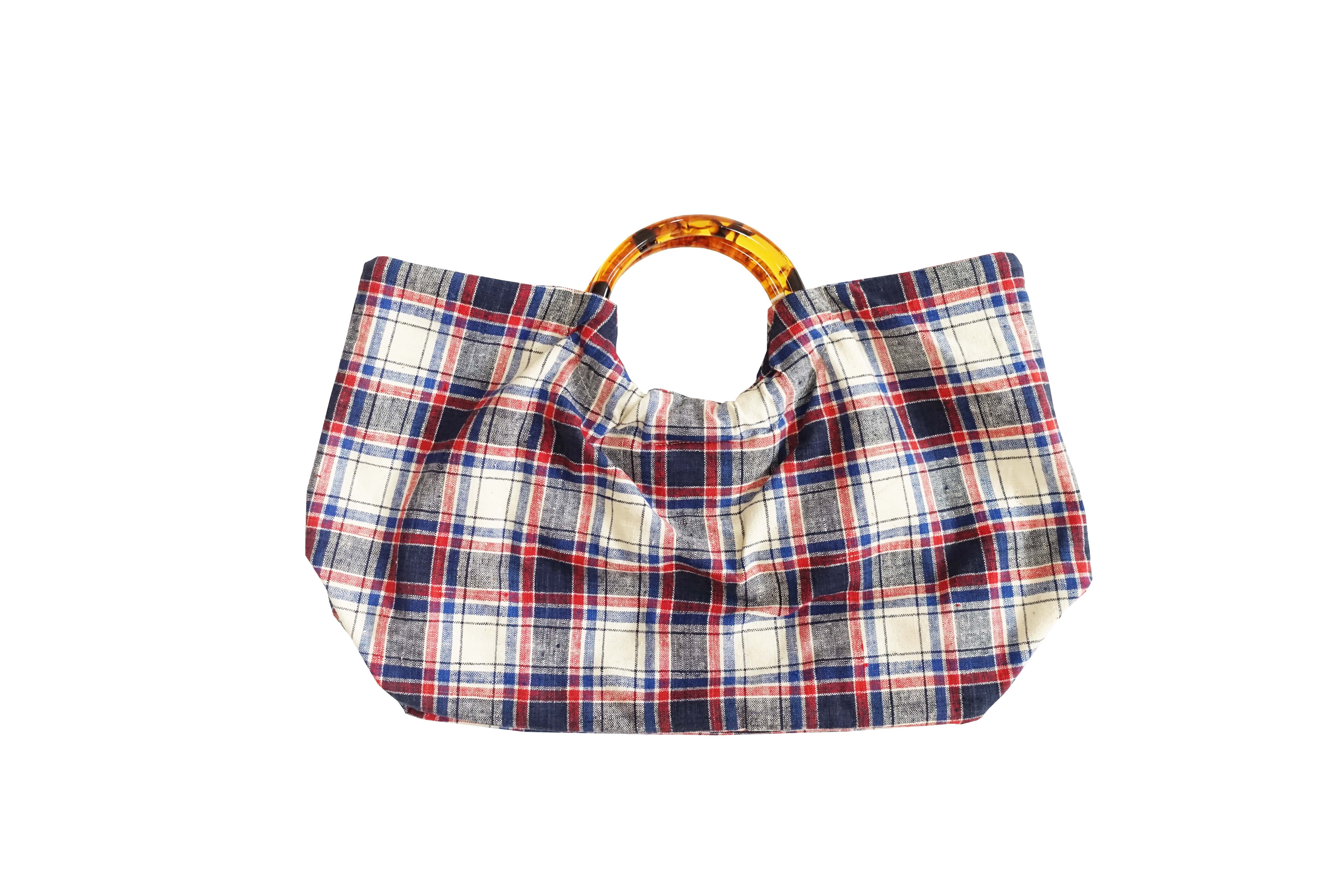 HUJI祤集Noble手提包老布TISSAGE格纹手织布