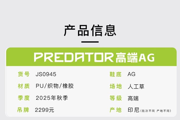 ADIDAS/阿迪达斯PREDATOR ELITE FT AG猎鹰高端FT鞋舌AG足球鞋JS0945