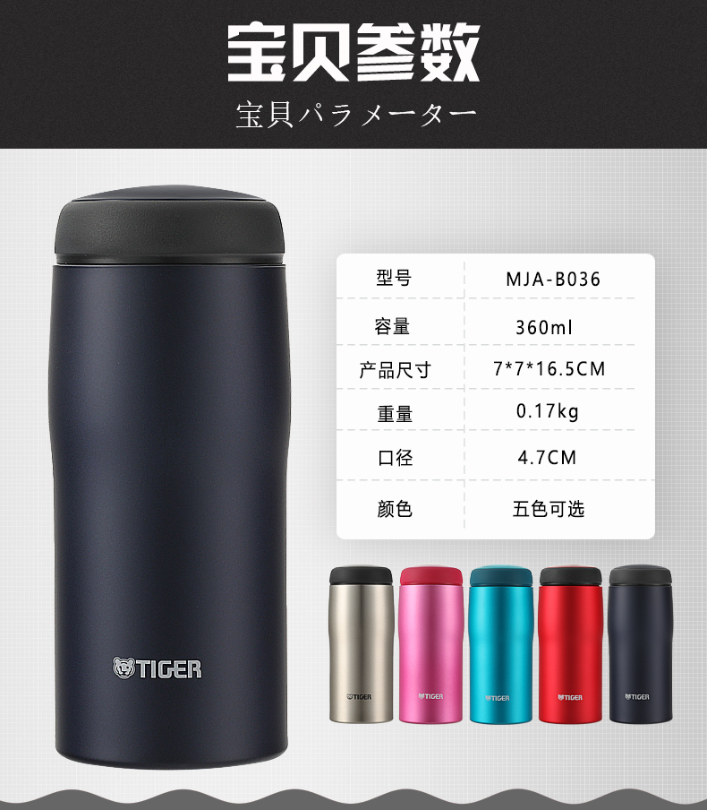 虎牌日本制不锈钢真空杯360ML/ MJA-B036保温杯泡茶杯水杯