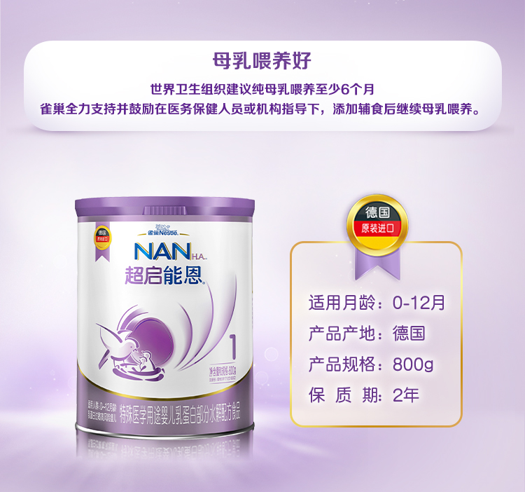 雀巢超启能恩乳蛋白部分水解婴儿配方粉0-6月龄800克