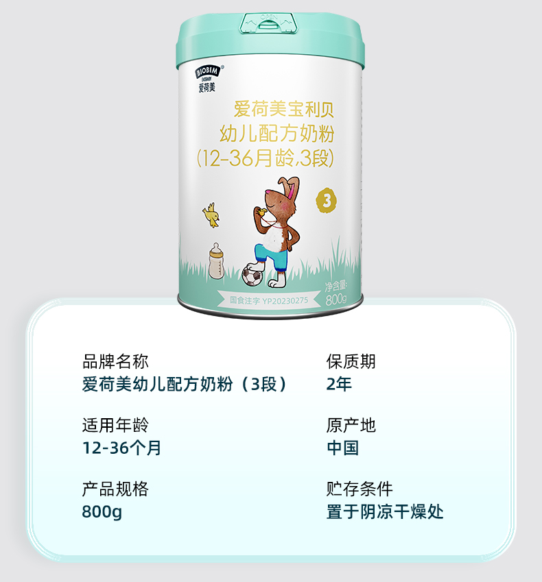 Ekobaby爱荷美宝利贝幼儿配方奶粉800g3段