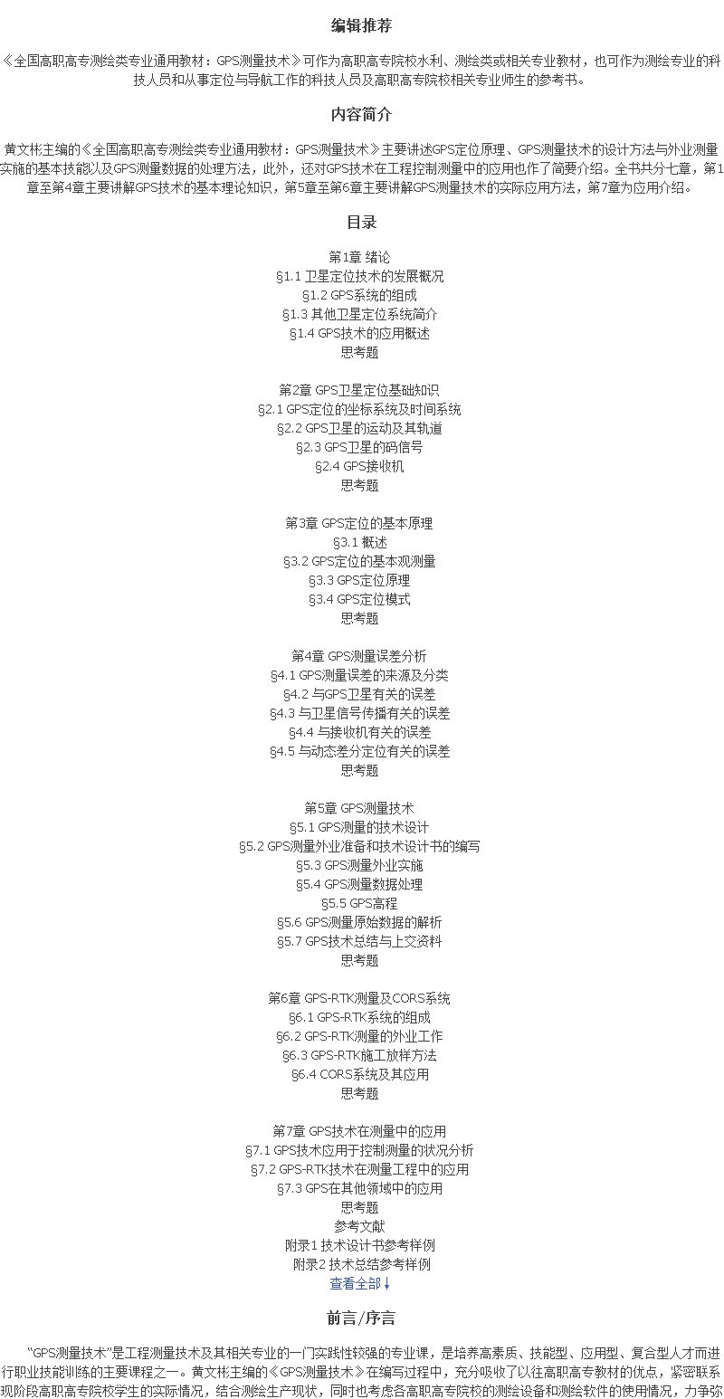 《全国高职高专测绘类专业通用教材:GPS测量技术》(黄文彬)