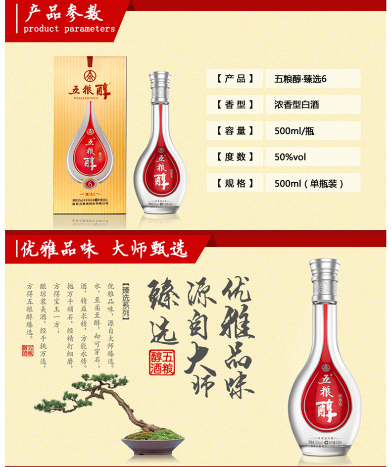 五粮醇臻选6 50度浓香型白酒 整箱500ml*6瓶包邮