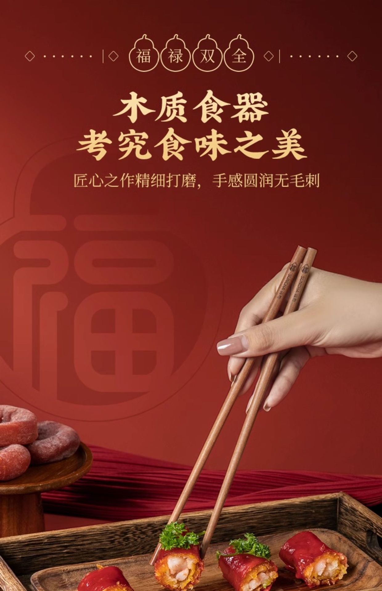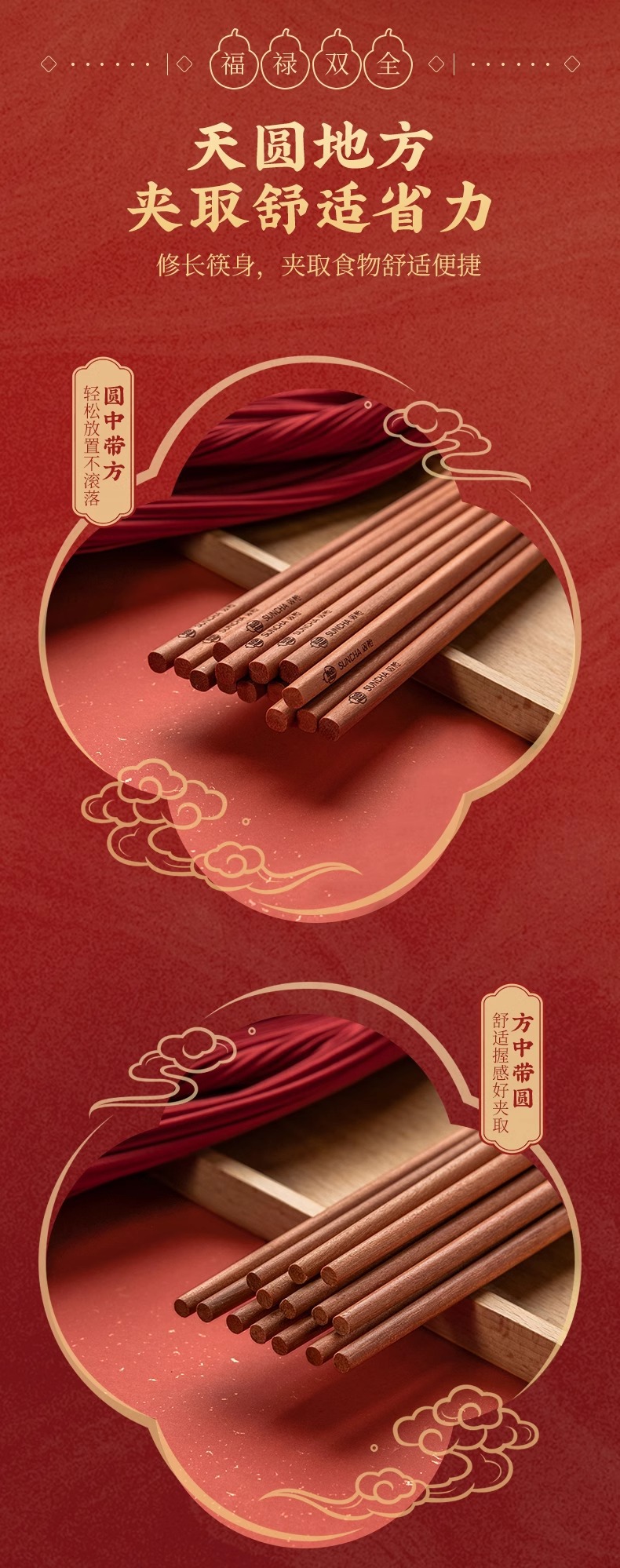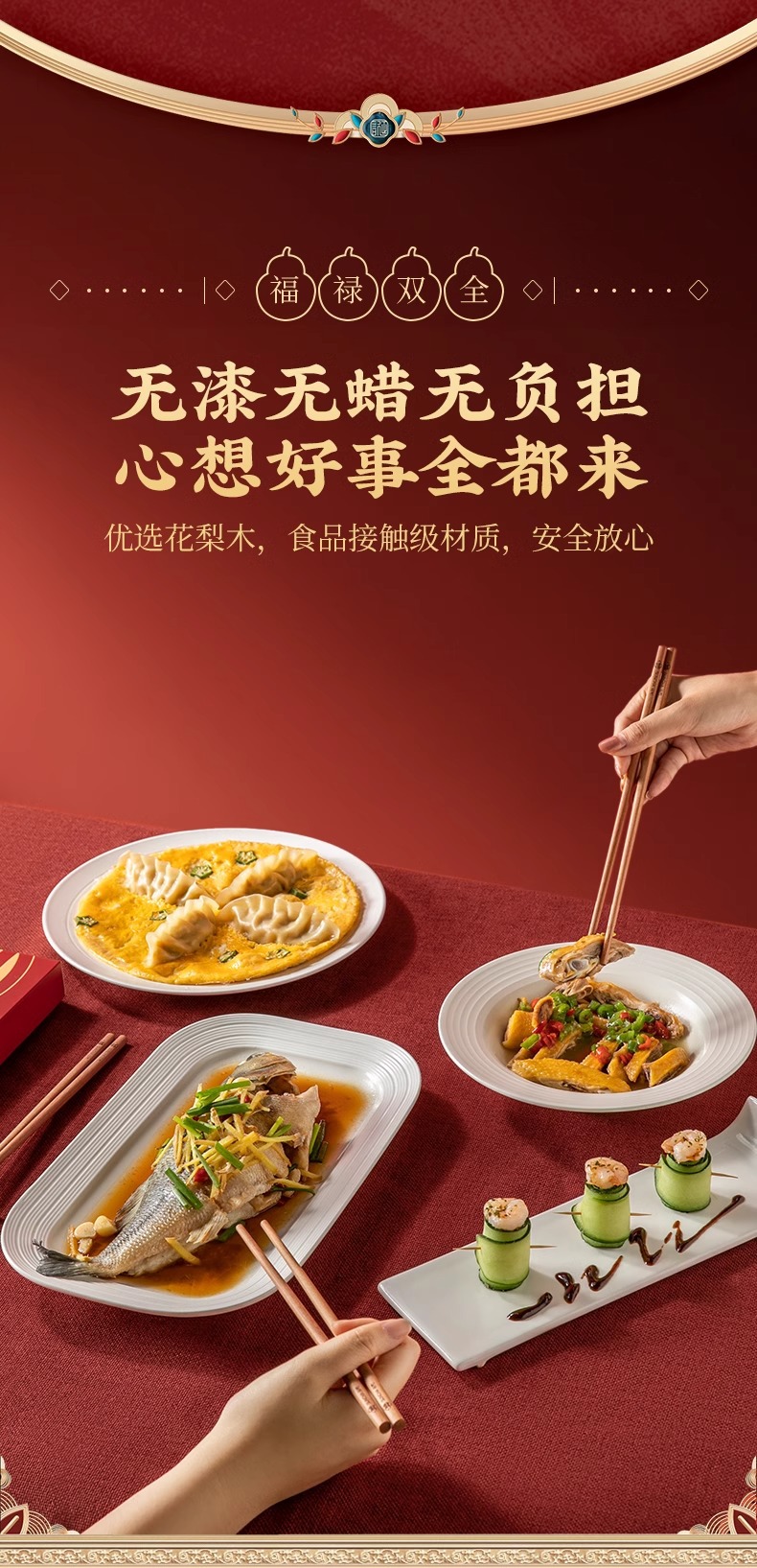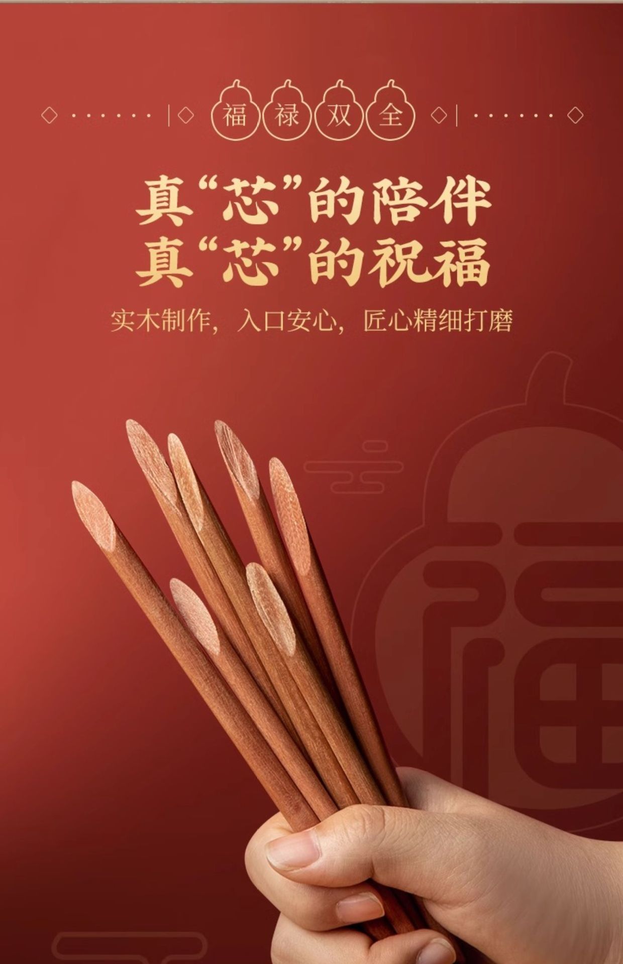 新年双福全禄【20双装!0漆0蜡花梨木筷子礼盒装】双枪高奢礼盒筷子套装 木筷鸡翅木家用木筷子 防霉无毒筷