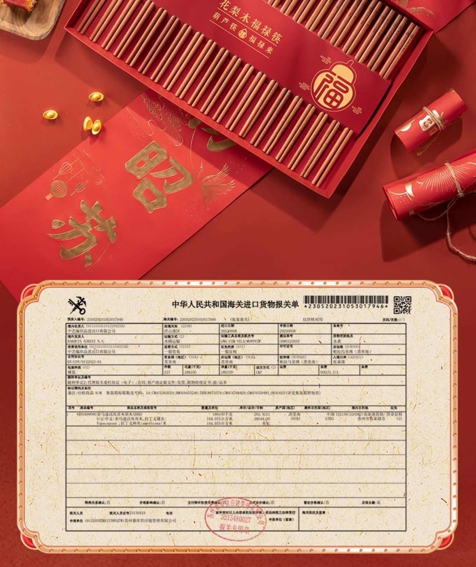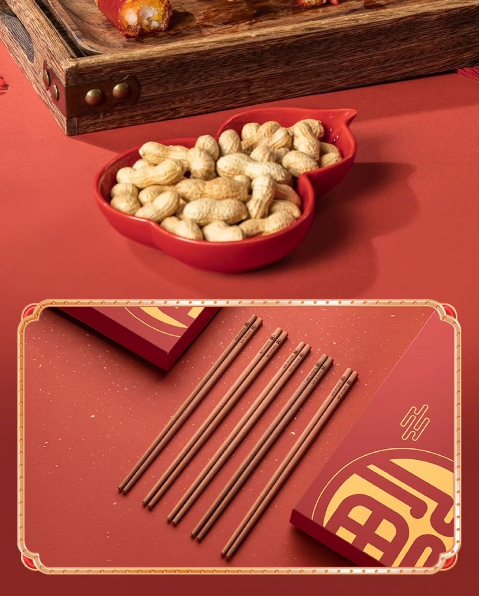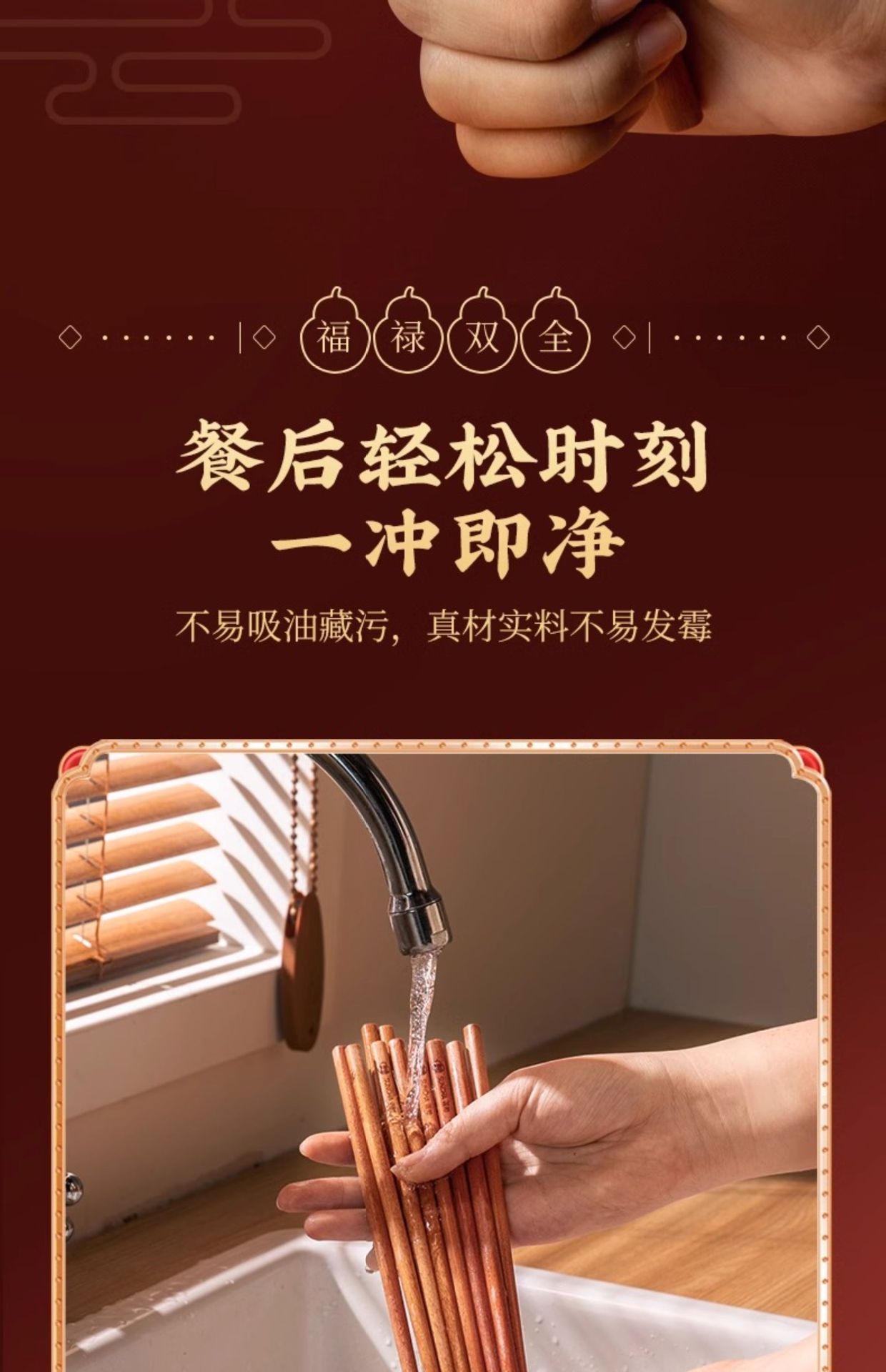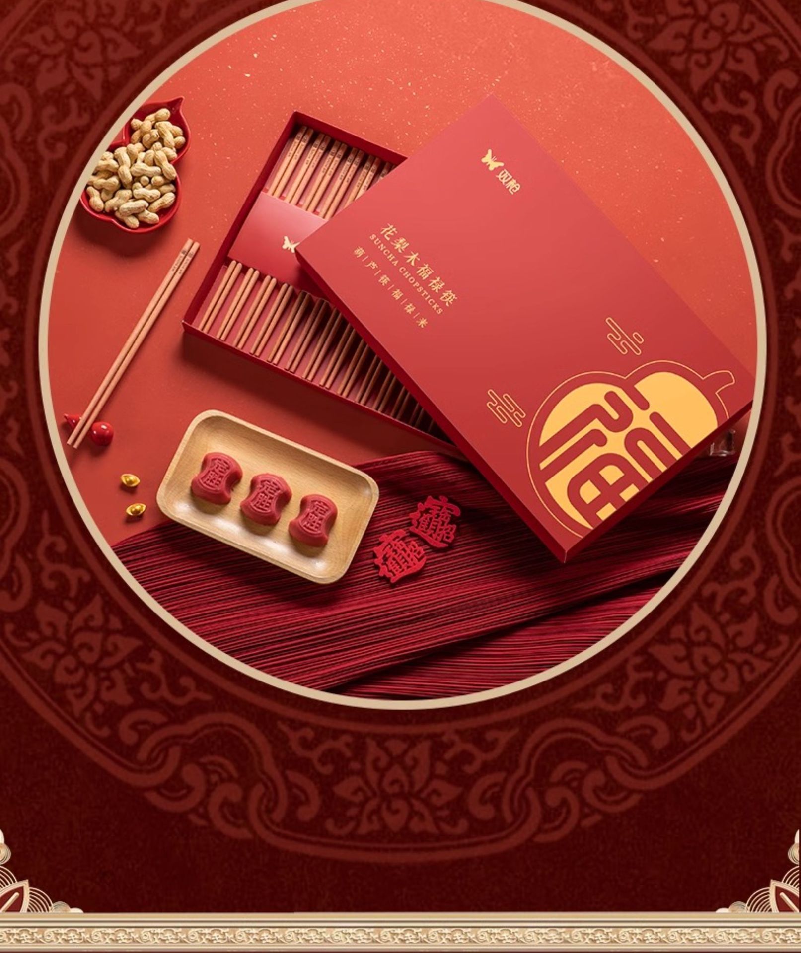 新年双福全禄【20双装!0漆0蜡花梨木筷子礼盒装】双枪高奢礼盒筷子套装 木筷鸡翅木家用木筷子 防霉无毒筷