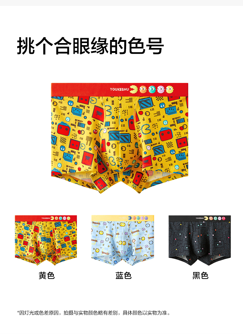 【新品上新】有棵树纯棉童年印花男士内裤平角裤3条装-U1208