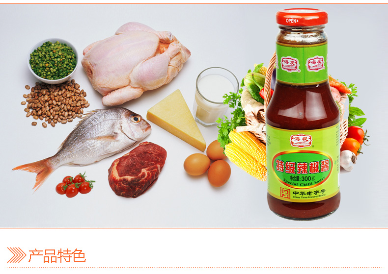 海堤特级辣椒酱300g*2瓶特级鲜椒酱即食蘸料剁椒拌饭拌面酱甜香辣