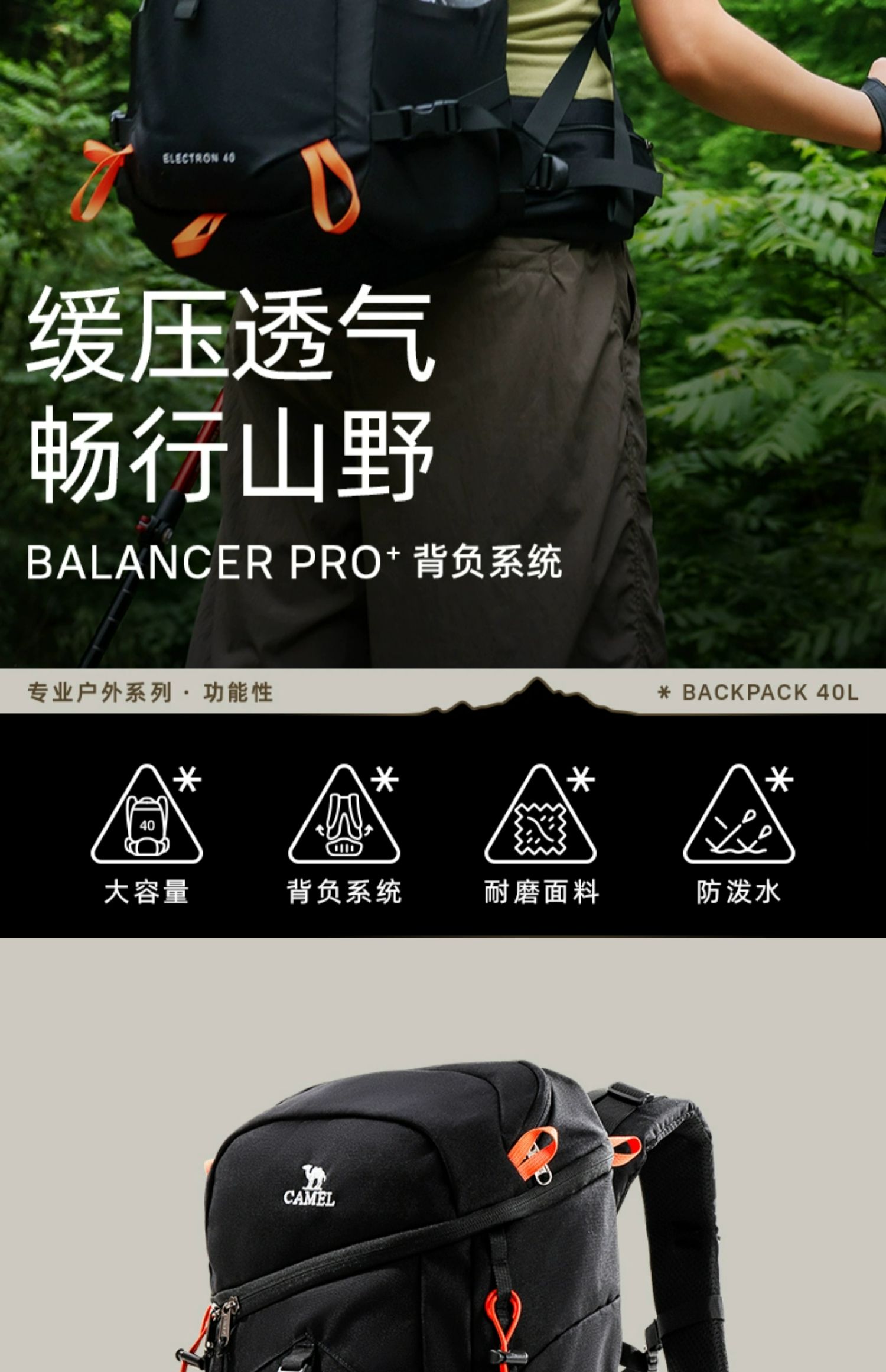 骆驼户外轻便登山包新款专业徒步防水旅行旅游防水书包背包双肩包 573C373045