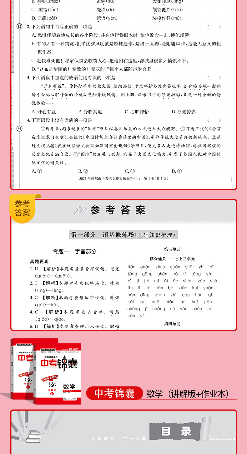 2026成都中考系统总复习语文数学化学道德与法治历史 中考锦囊初三中考四川总复习资料语文 成都中考真题卷 天府中考总复习教辅图书