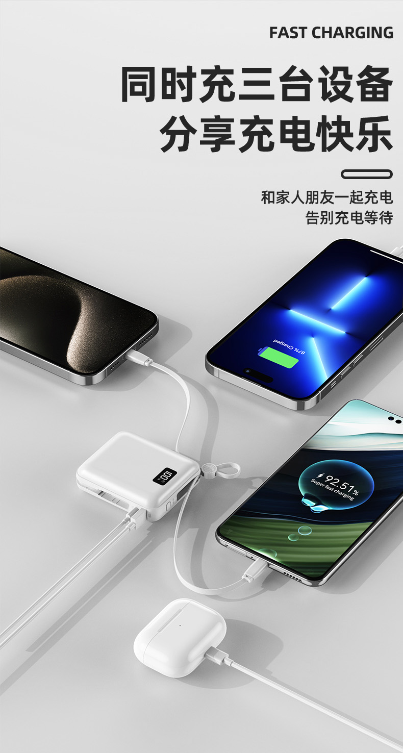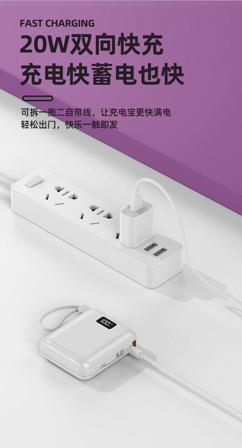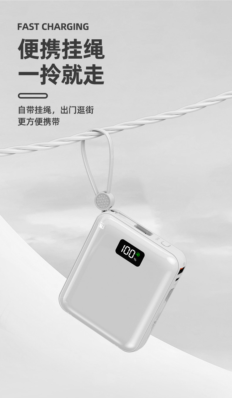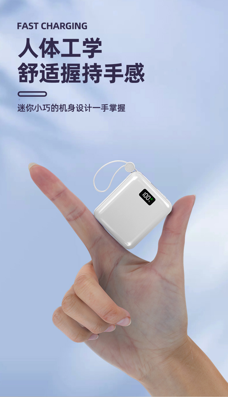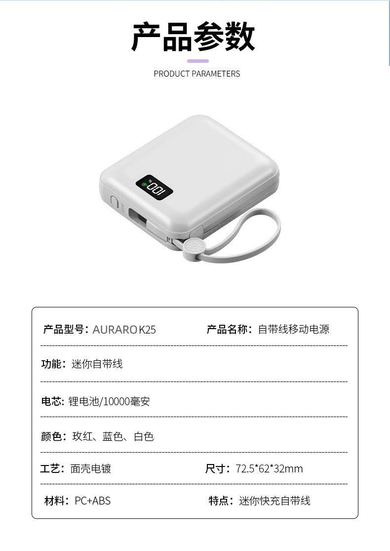 Auraro K25 迷你自带线充电宝10000毫安