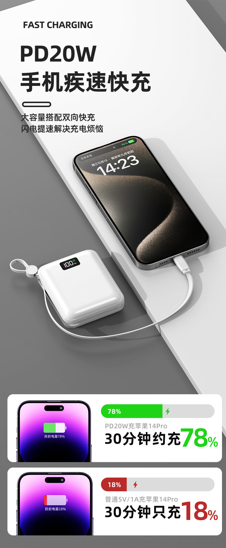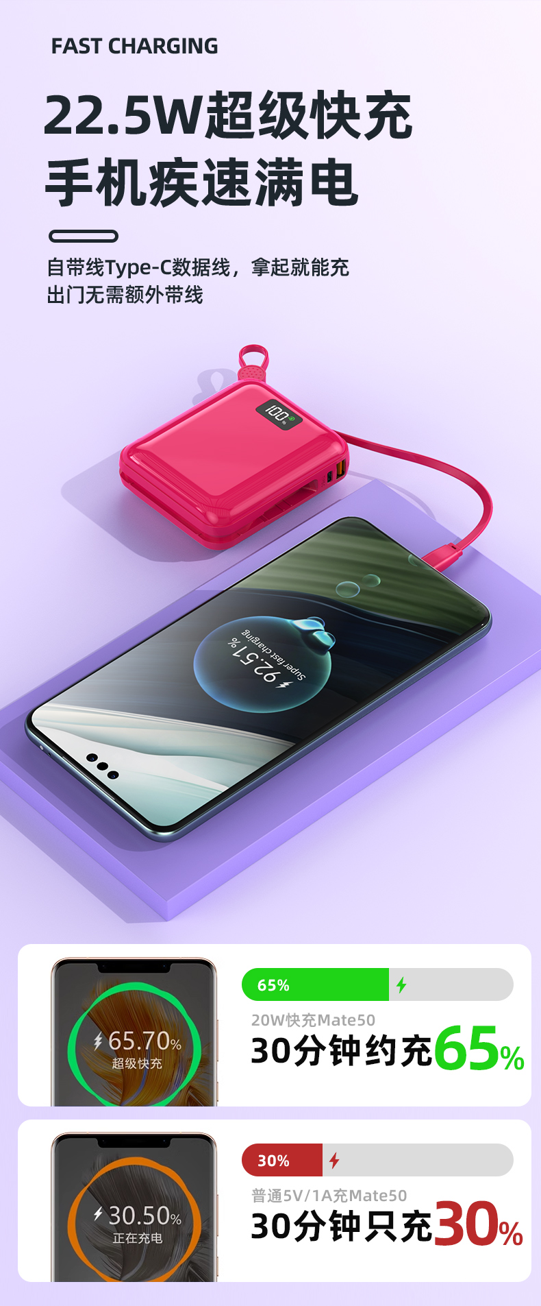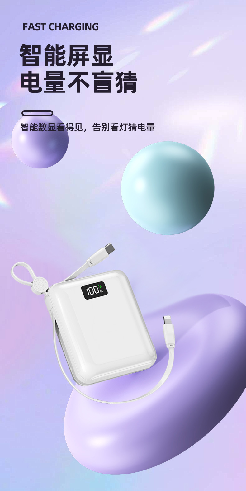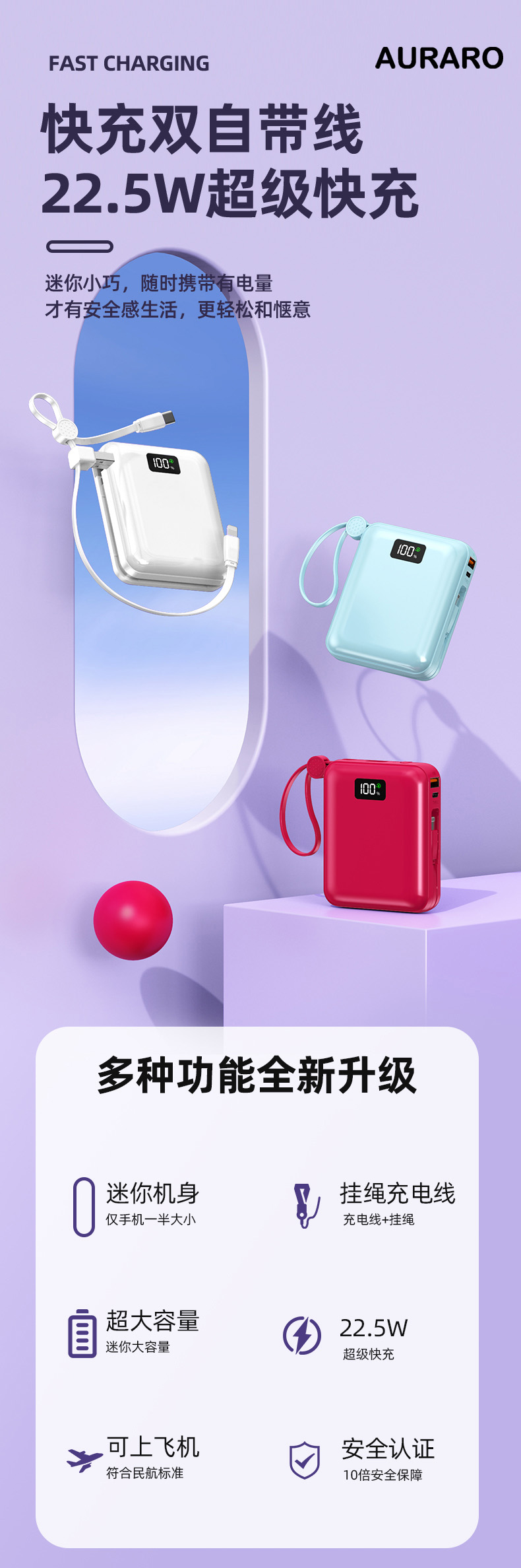 Auraro K25 迷你自带线充电宝10000毫安