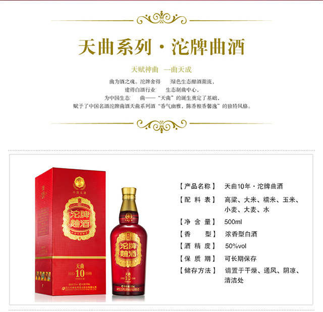 舍得酒业出品沱牌天曲10年 50°浓香型白酒 整箱500ml×6瓶包邮