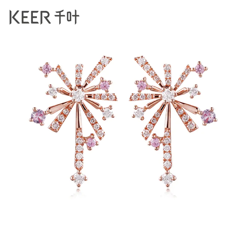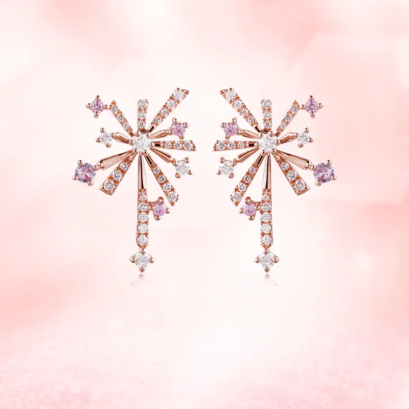 千叶珠宝 心光 | 烟花S 18K金钻石、蓝宝石耳饰/耳钉/耳吊(粉色蓝宝石)39900025001