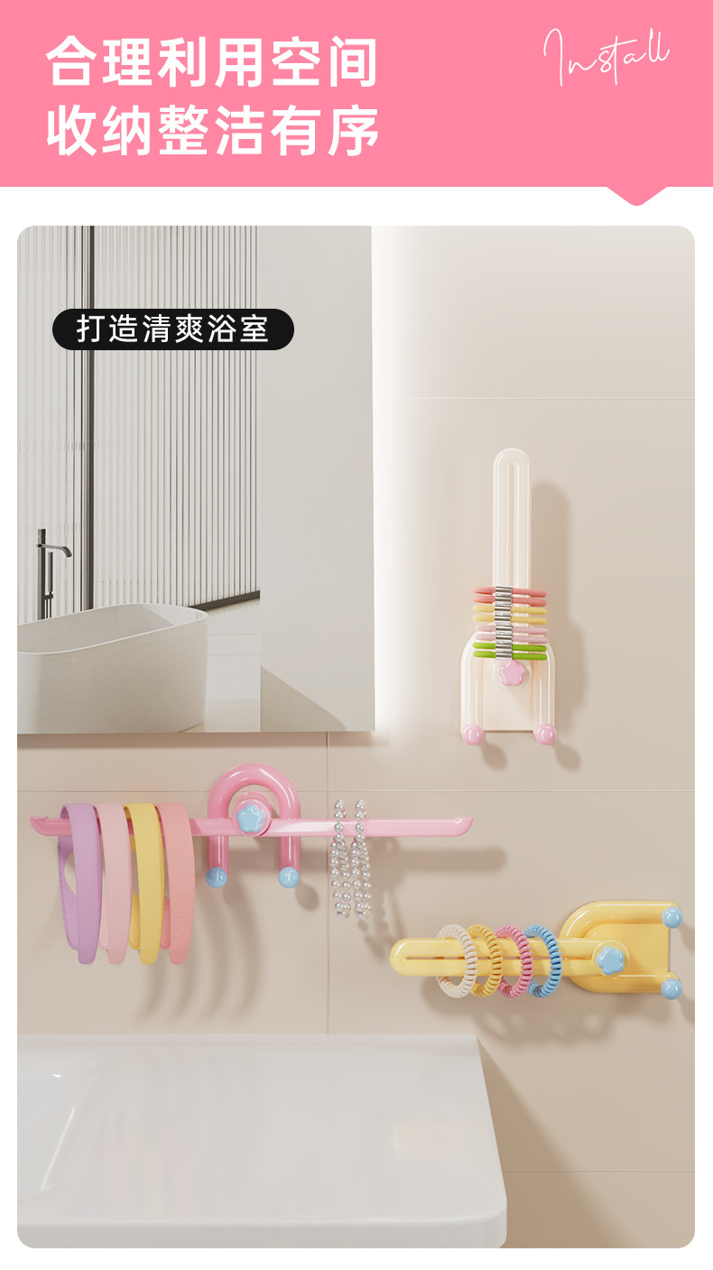 【多巴胺!免钉式收纳架】 发圈收纳架 L型发箍 发饰头绳 收纳挂钩 卫生巾免打孔收纳神器