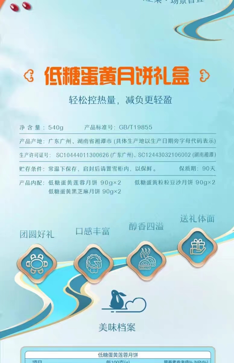 【包邮】广州酒家 | 低糖蛋黄月饼礼盒540g6粒装