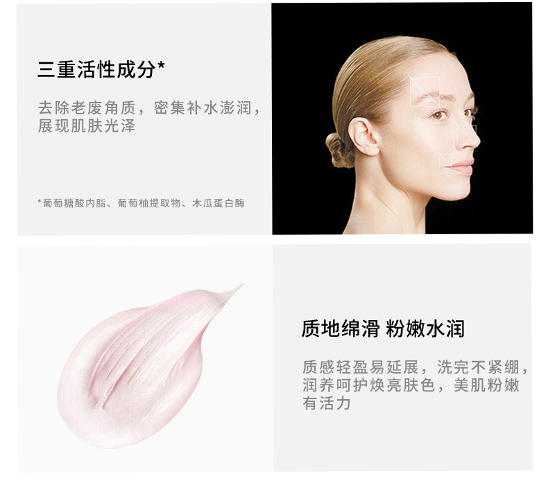 一款具有快速美颜功效的面膜;富含皮肤促进因子复合物,为肌肤增加能量;添加透明质酸与脱脂酶,质地水润,