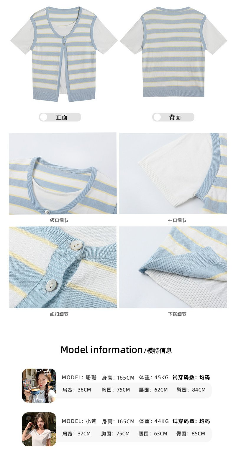 <曾小咸推荐>4.6现货秒杀 !微信超特价!韩系假两件条纹短袖 日常169.99 立减90 秒杀79.99!!