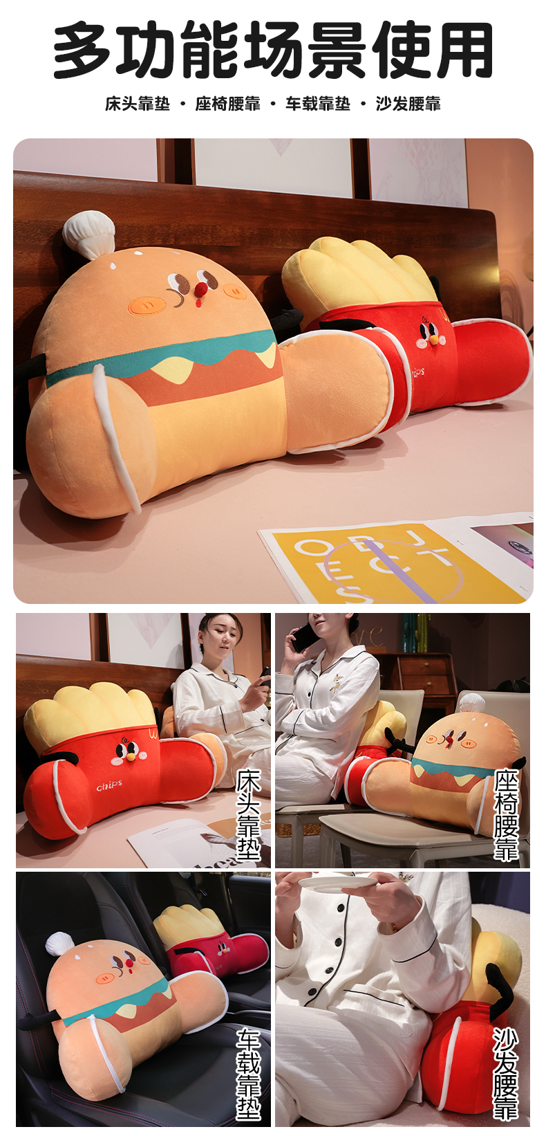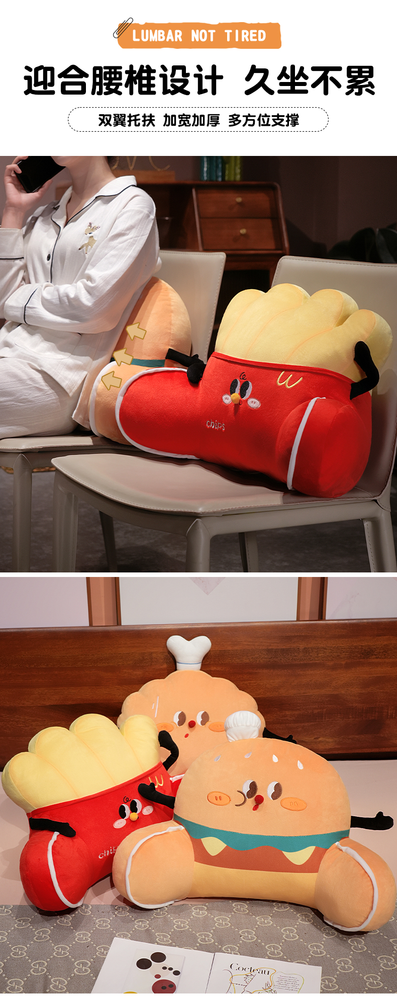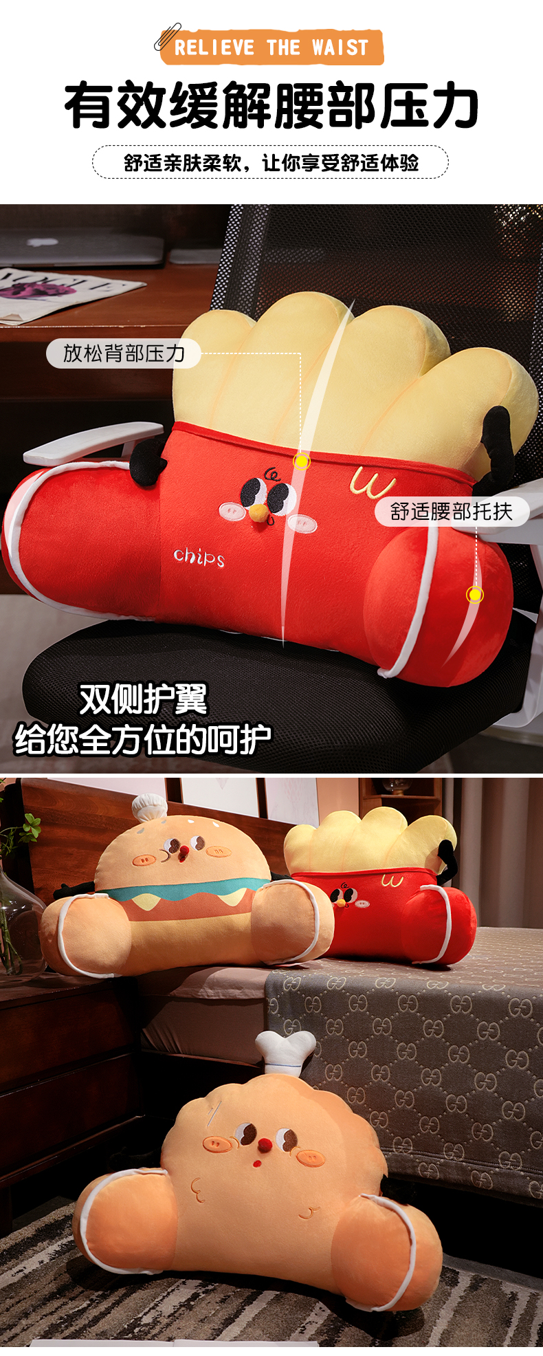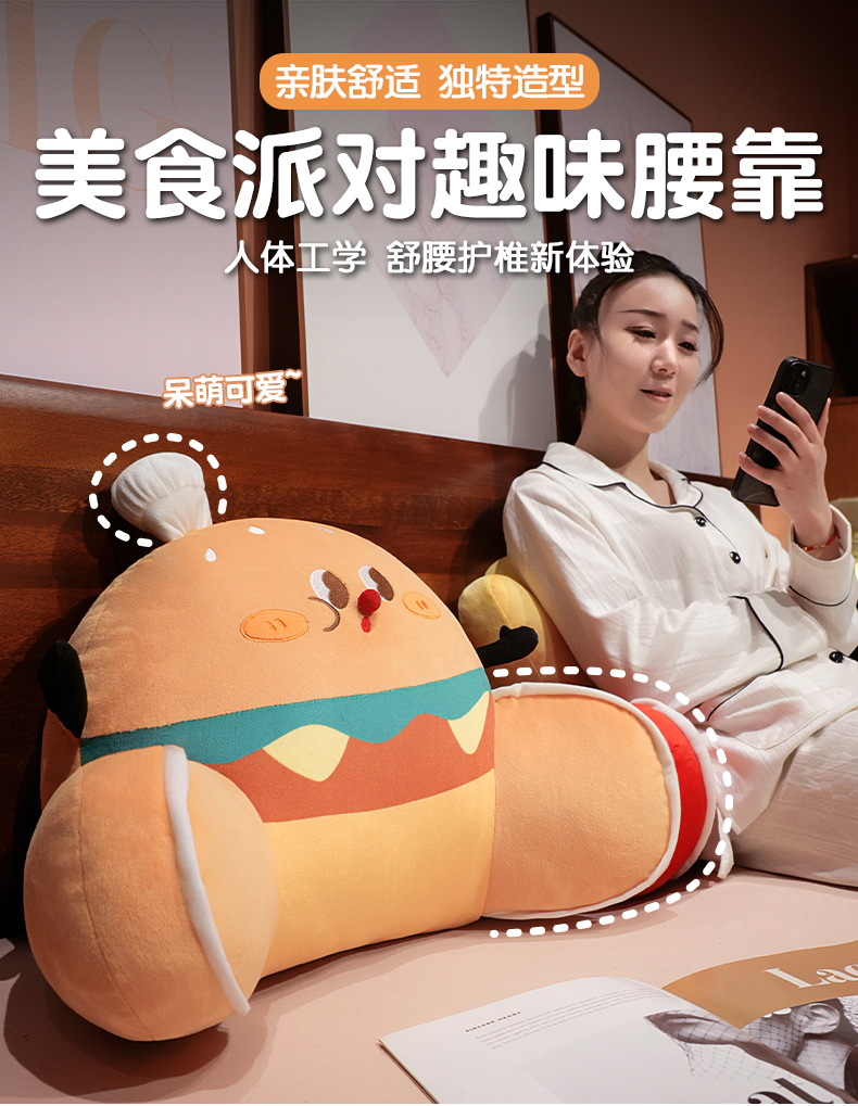 自然醒美食派对趣味拥抱式腰靠办公室久坐护腰靠垫汽车靠背垫椅子靠枕QYL