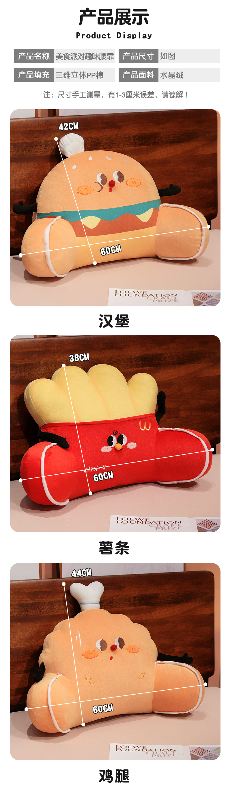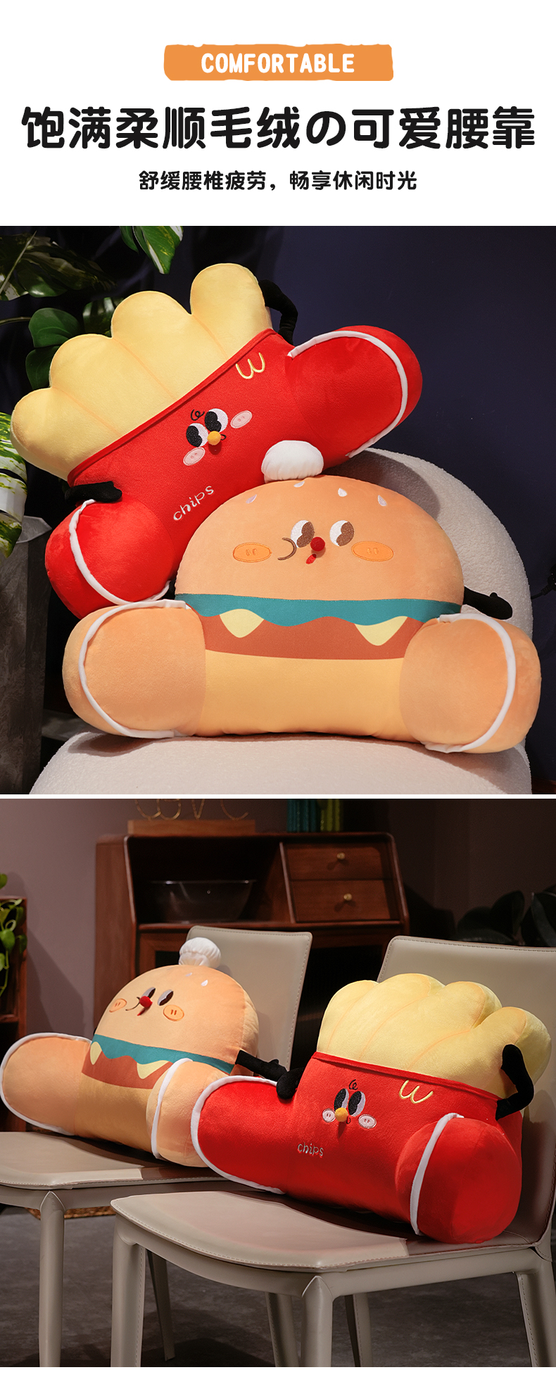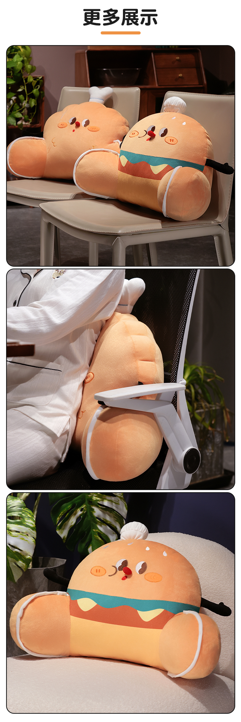 自然醒美食派对趣味拥抱式腰靠办公室久坐护腰靠垫汽车靠背垫椅子靠枕QYL