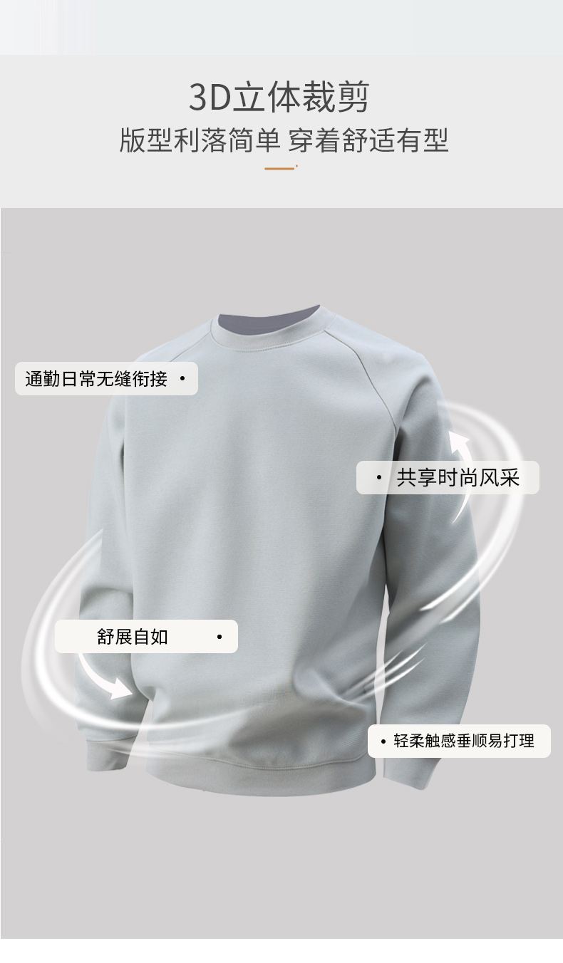 罗蒙男士春秋款卫衣纯色圆领插肩袖百搭通勤舒适弹力男士上衣套头卫衣 商品图9