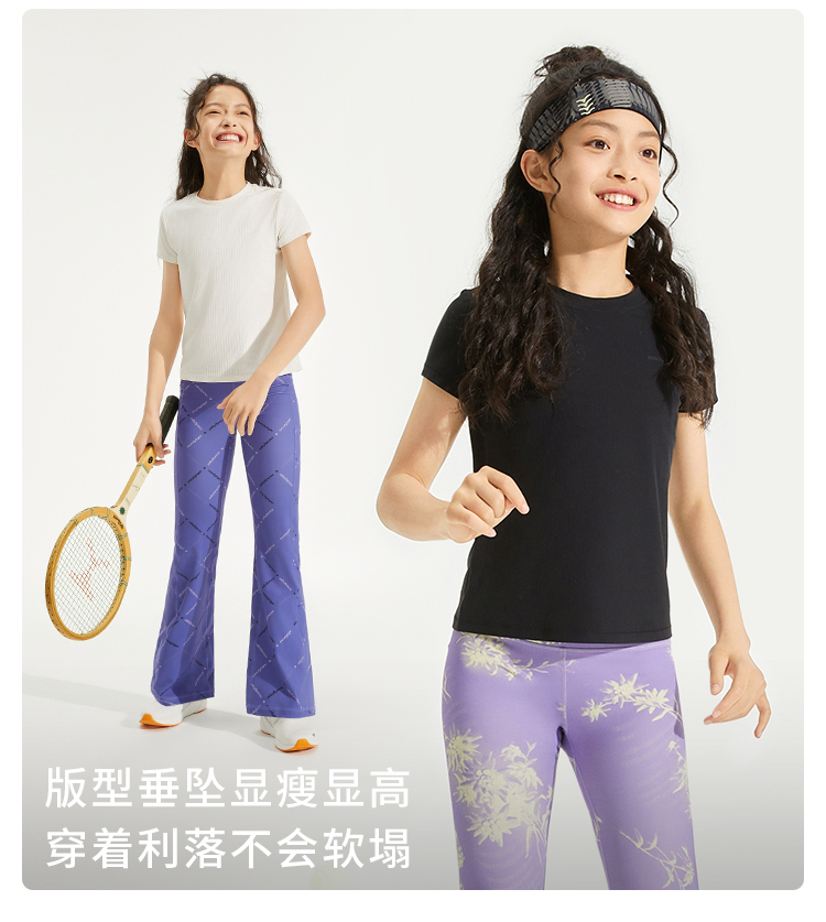 【24年秋新】moodytiger24秋新女童休闲运动透气弹力宽松圆领T恤短袖43210101