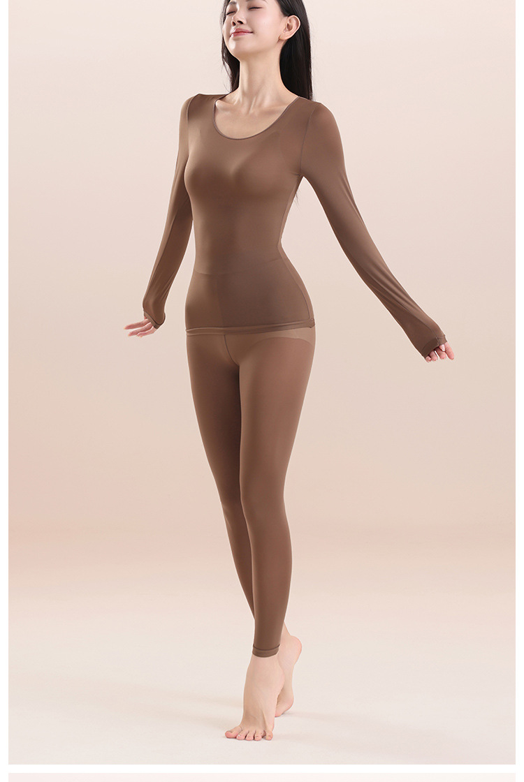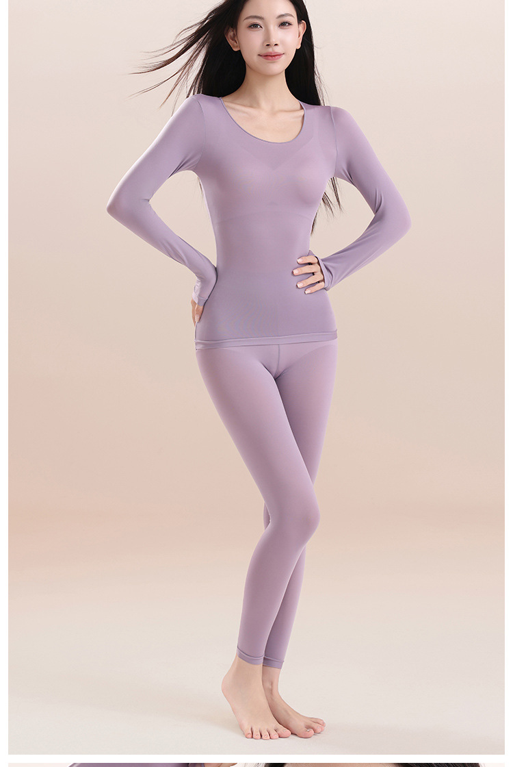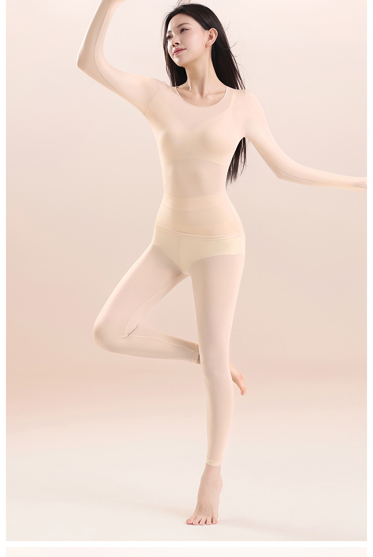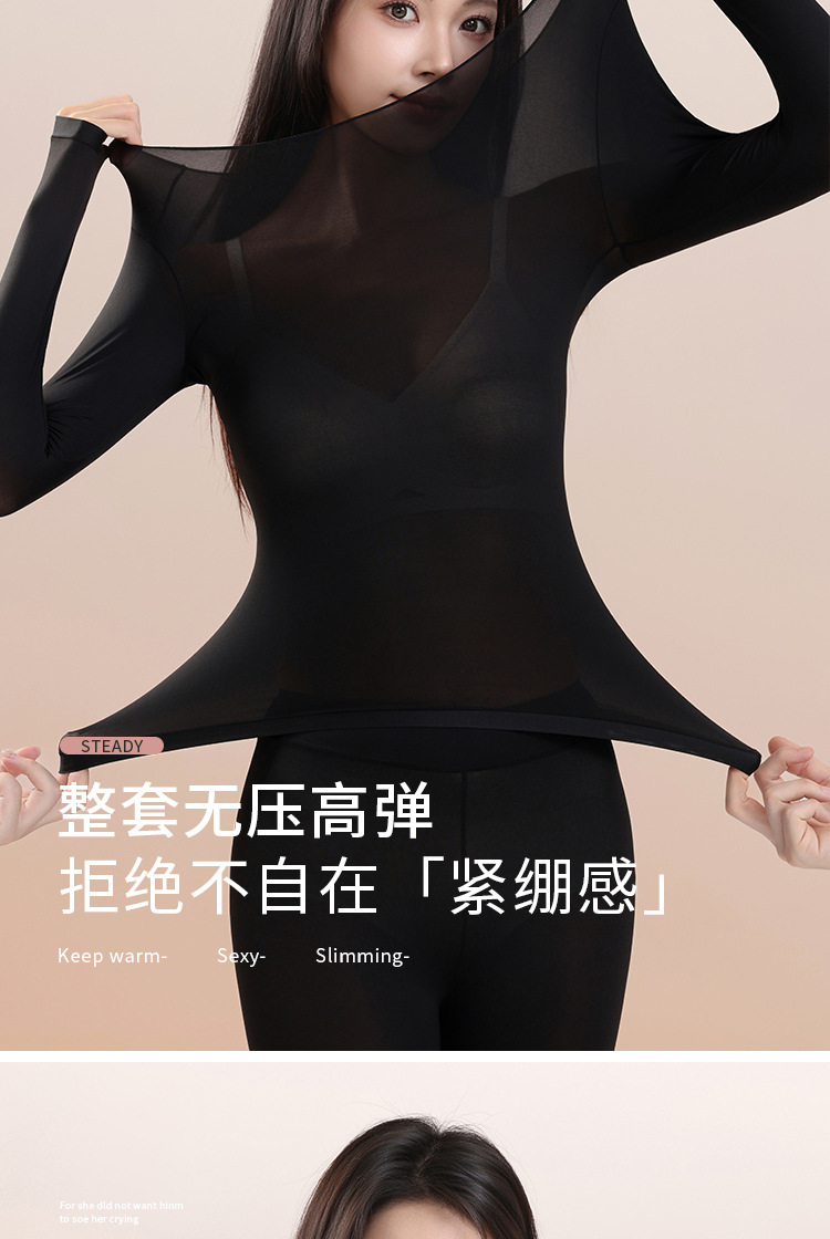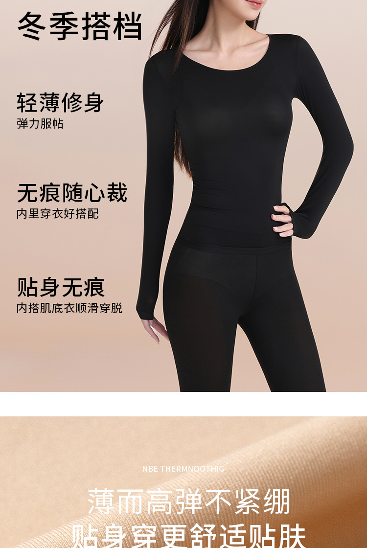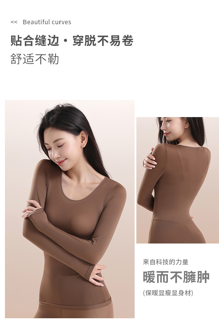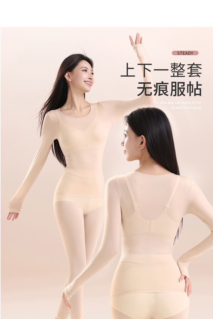 397398超薄肌底衣保暖内衣女士秋衣秋裤套装隐形无痕打底衫美肤衣