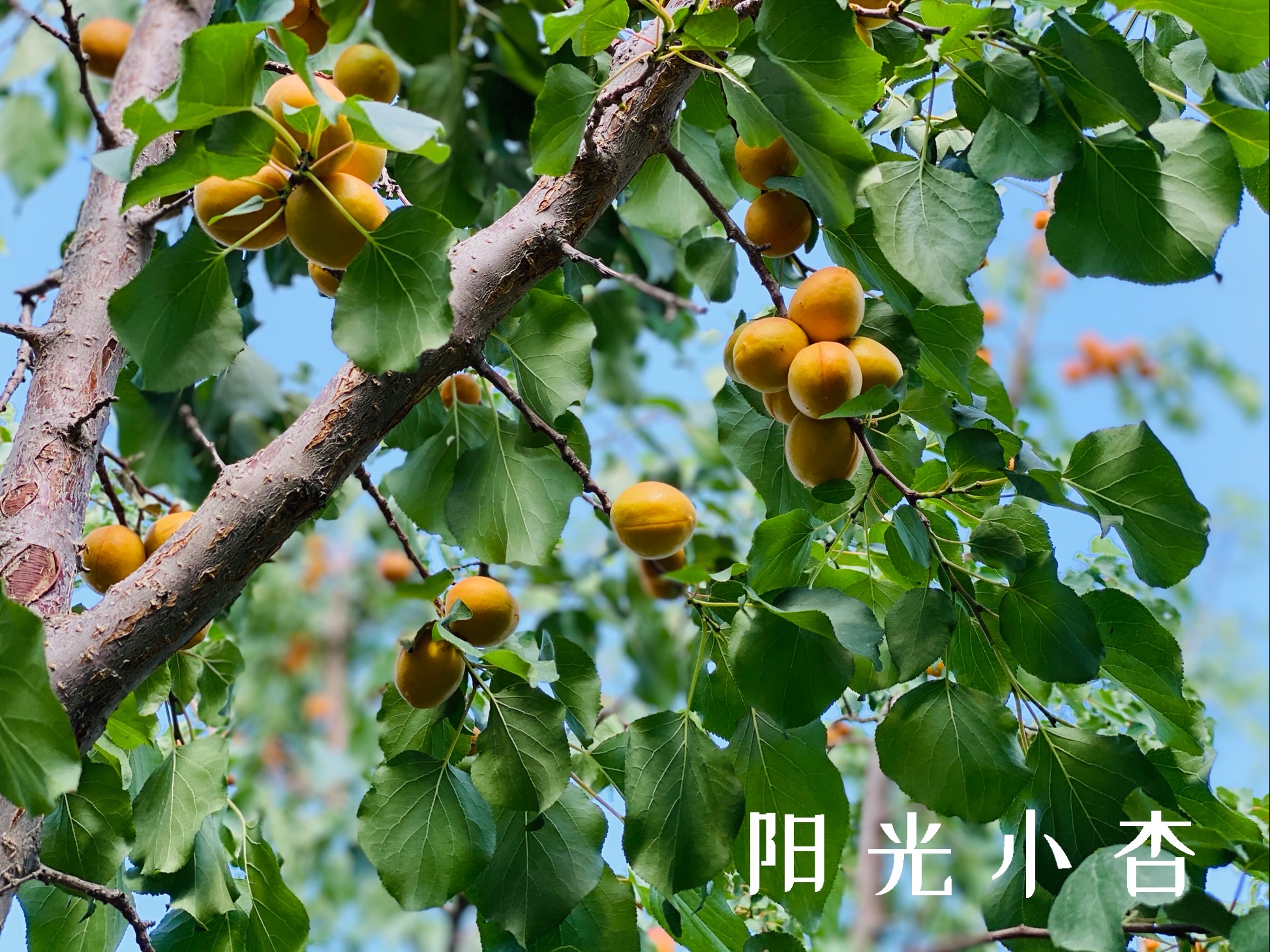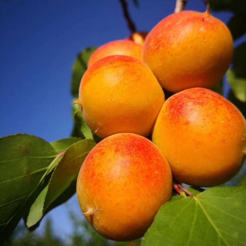 阳光晃得人睁不开眼、天空蓝得不像话,全年日照长达3500小时,昼夜温差大,可使红杏中糖分充分积累,同时着色也均匀自然,颜色很是诱人~生长环境优渥得让人嫉妒,长成的果实也肉质饱满,香气浓郁。
