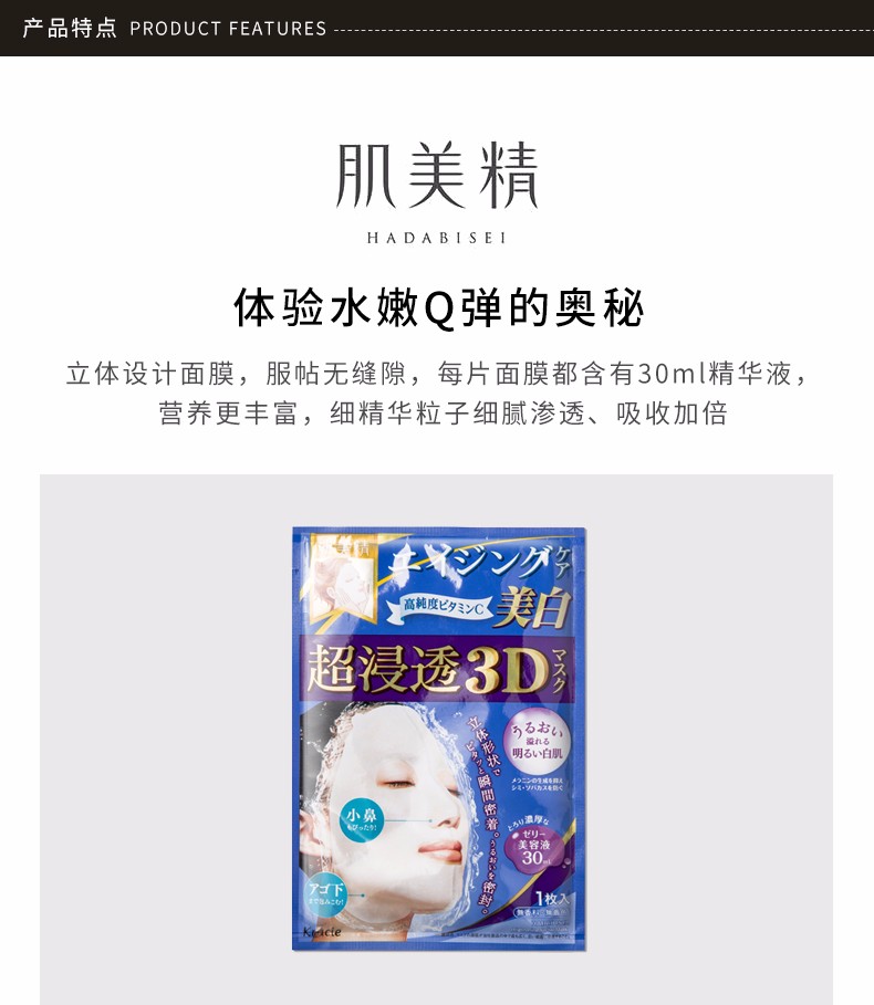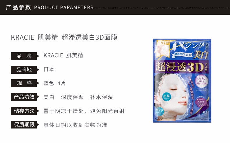 KRACIE肌美精 超渗透美白3D面膜 蓝色 4片 日本