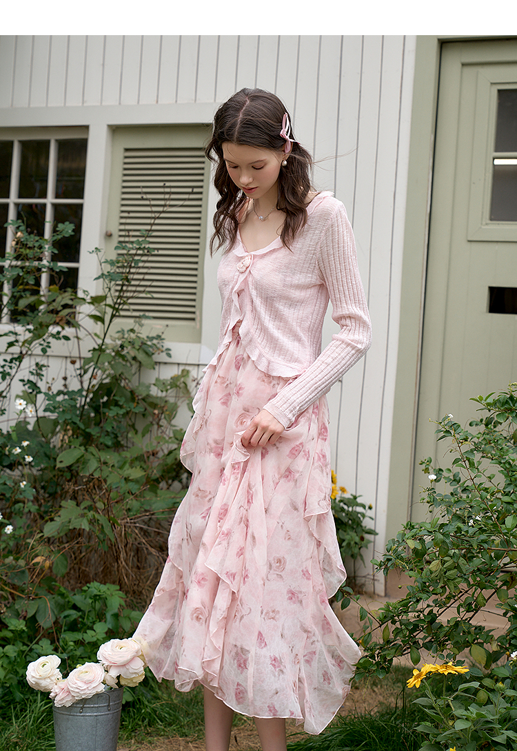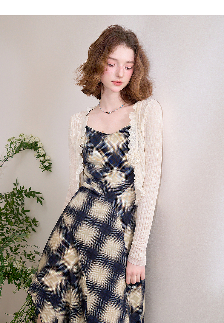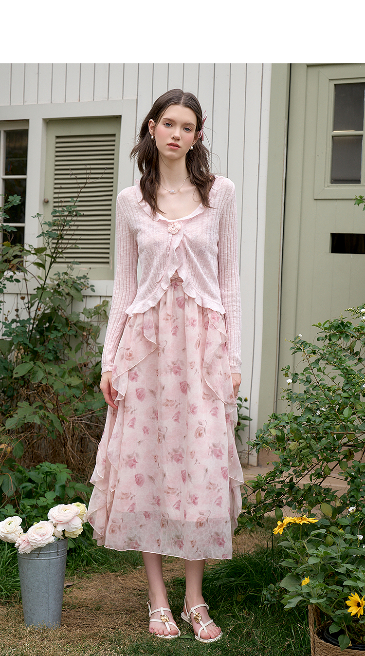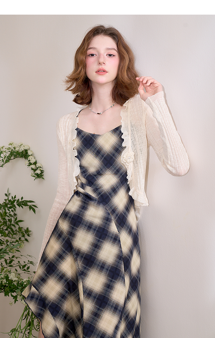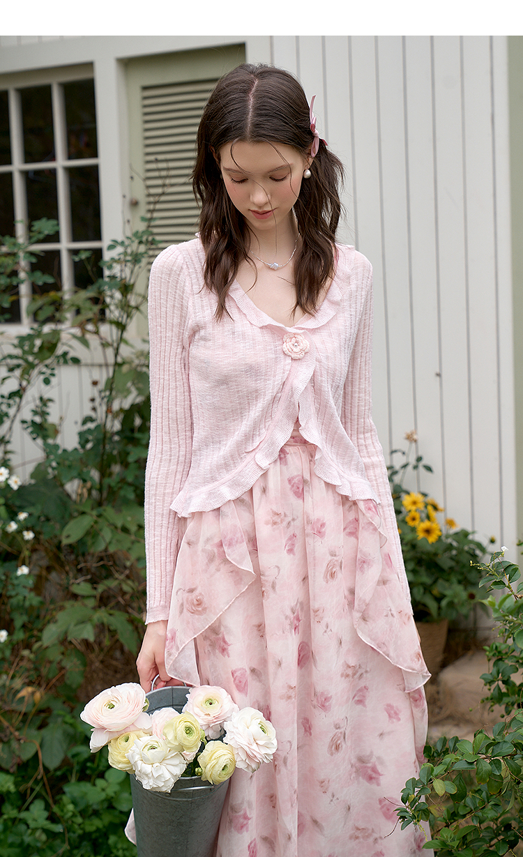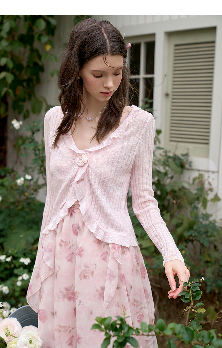 西遇蓝色薄款针织开衫女新款花朵荷叶边防晒短款外套D0050410