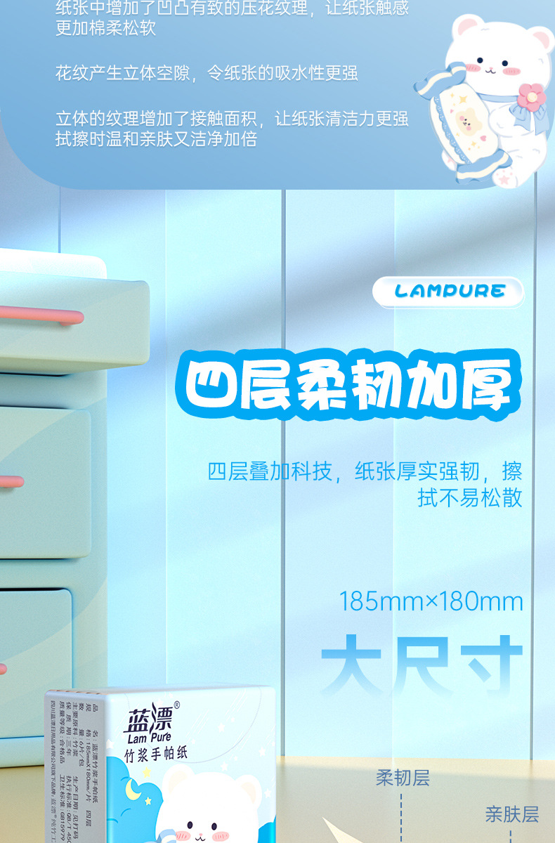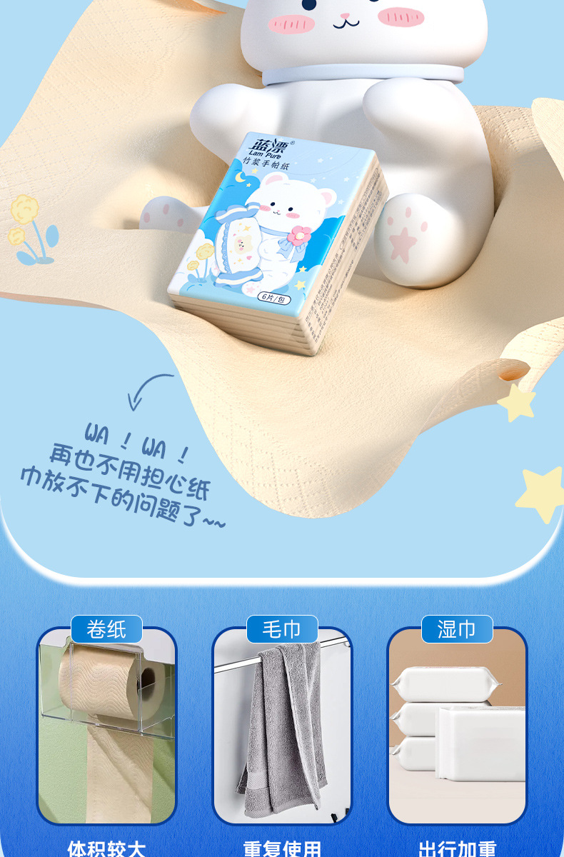 「9.9到手30包!本色手帕纸」蓝漂竹浆本色迷你手帕纸 便捷式小包居家日用纸巾