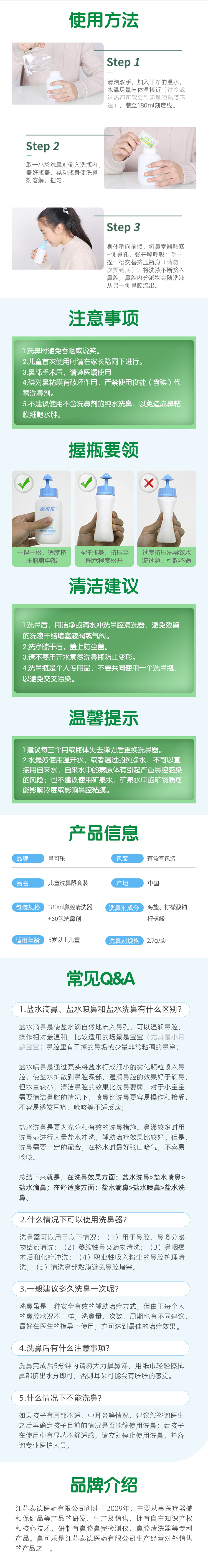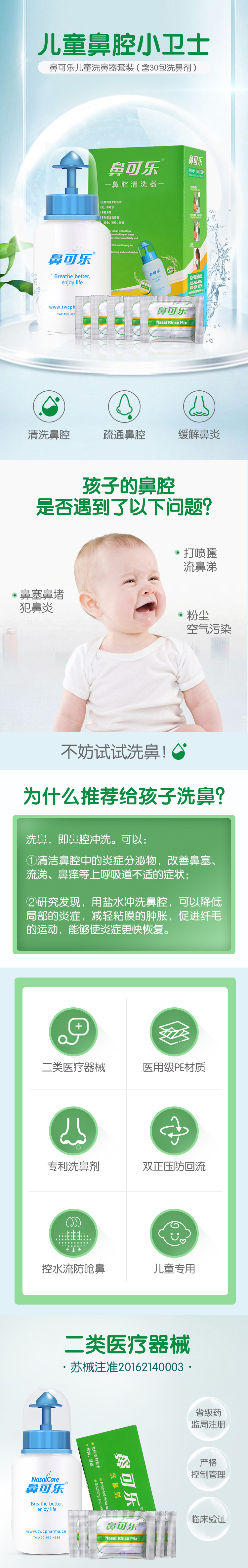 鼻可乐儿童洗鼻器套装 180ml鼻腔清洗器+2.7g*30包洗鼻剂