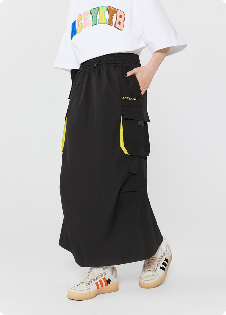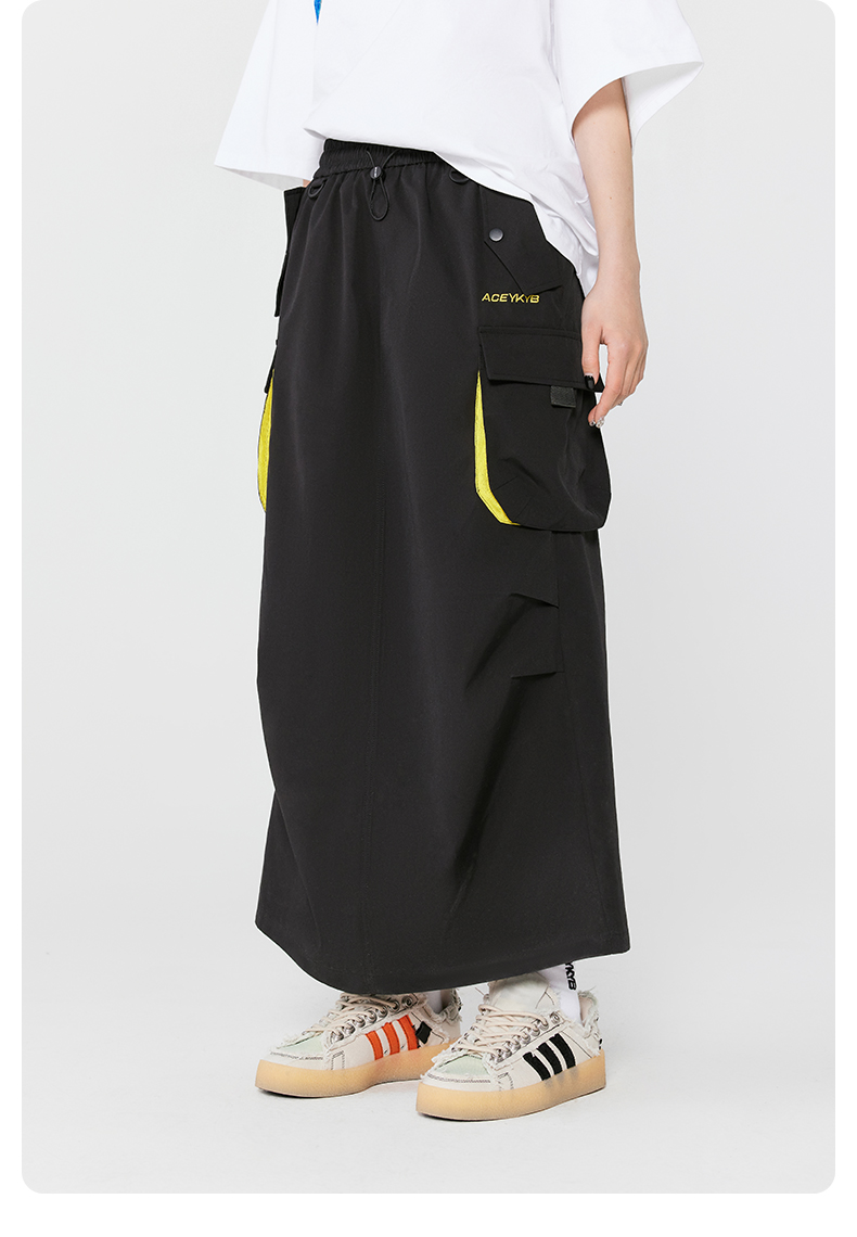 YKYB黄子韬复古bella机能半身裙女2025春季新款撞色中长款工装裙
