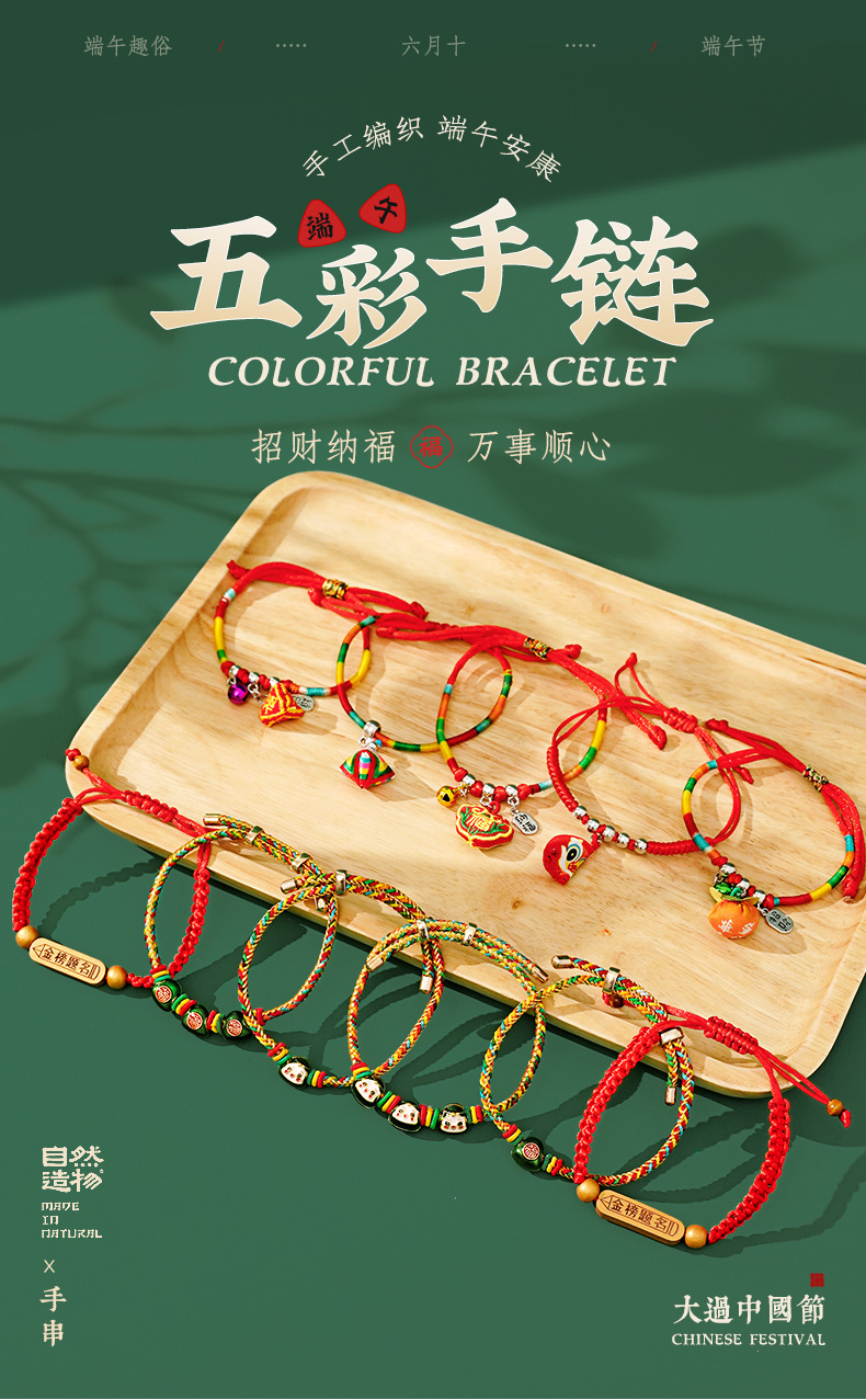 【五彩手链,招财纳福~】手链端午节红绳 五彩绳成人礼 编织手绳 香包成品 礼物手饰 送男女礼品-QQ