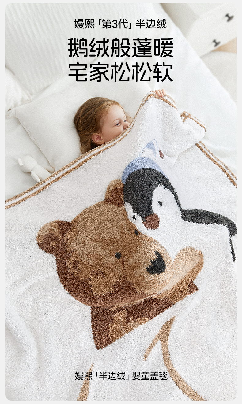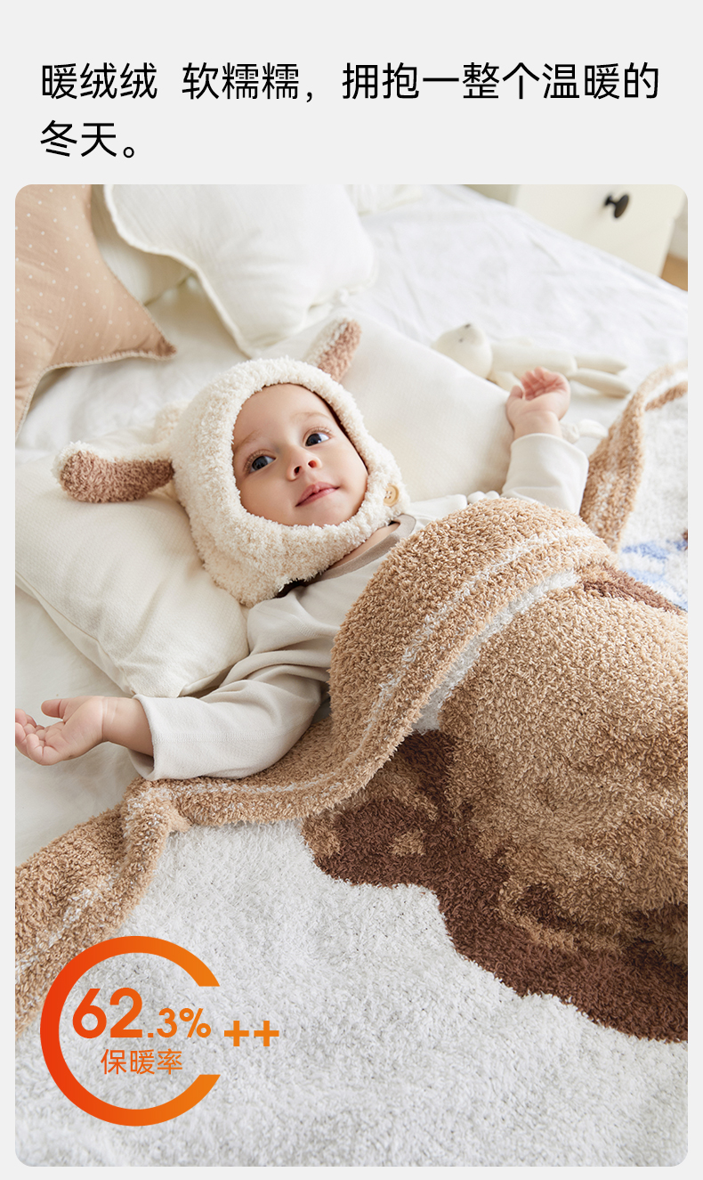 【宝宝安睡】嫚熙半边绒婴儿盖毯秋冬季小羊绒婴儿毛毯宝宝盖毯春秋四季婴儿被