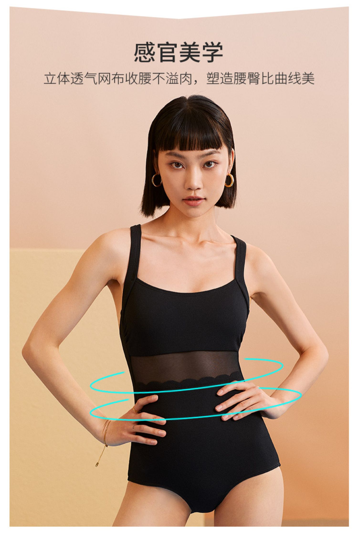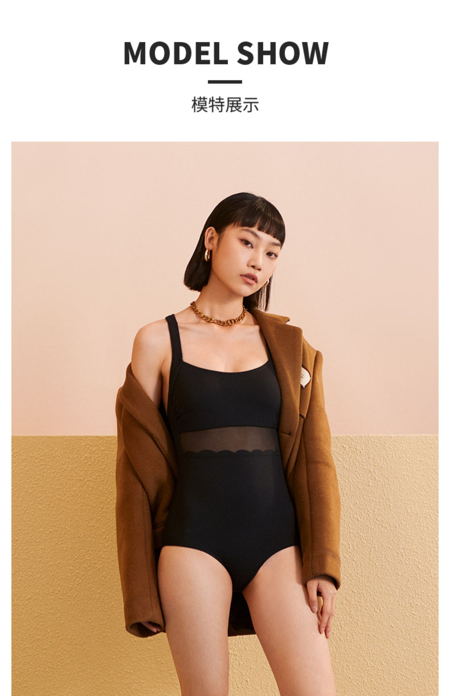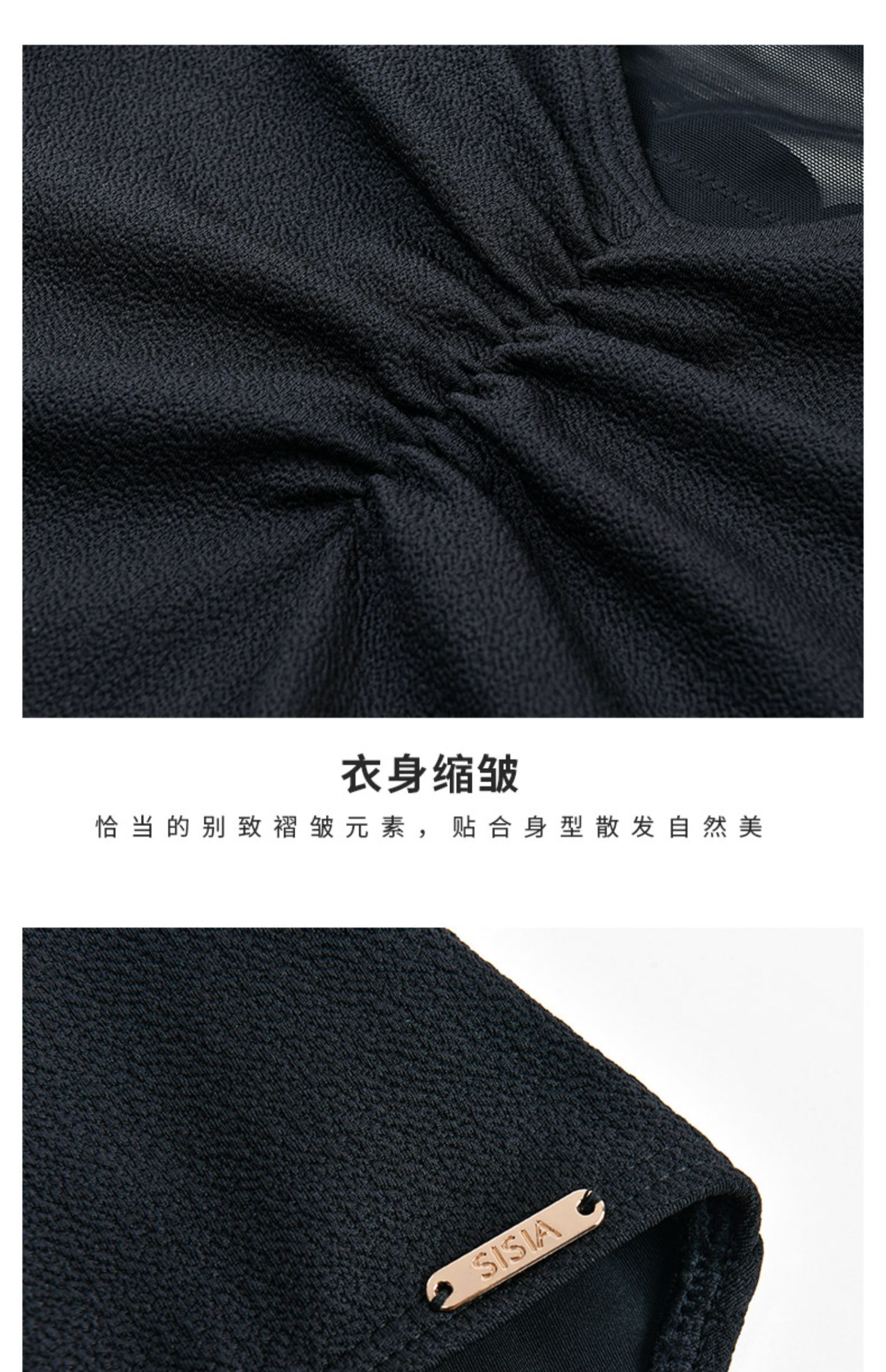 SISIA连体泳衣女网红风黑色镂空性感新款泡温泉游泳装女显瘦遮肚