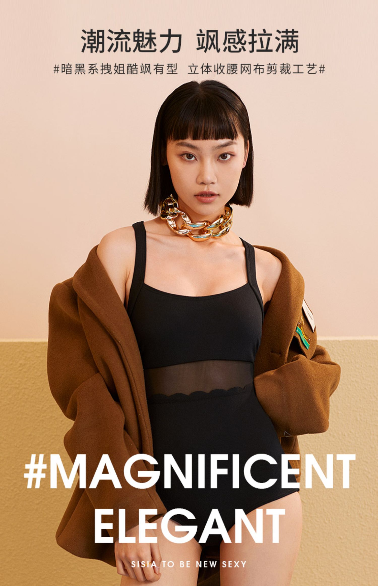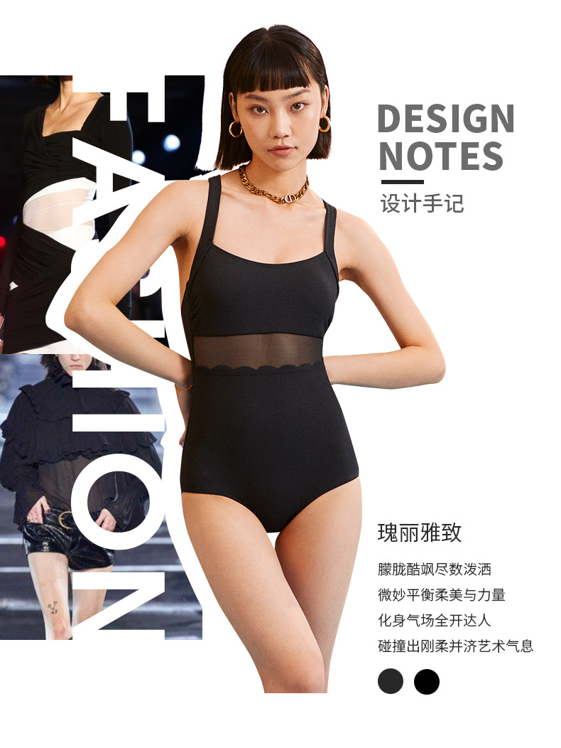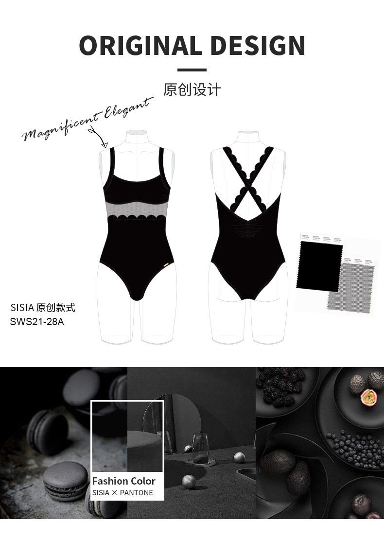 SISIA连体泳衣女网红风黑色镂空性感新款泡温泉游泳装女显瘦遮肚