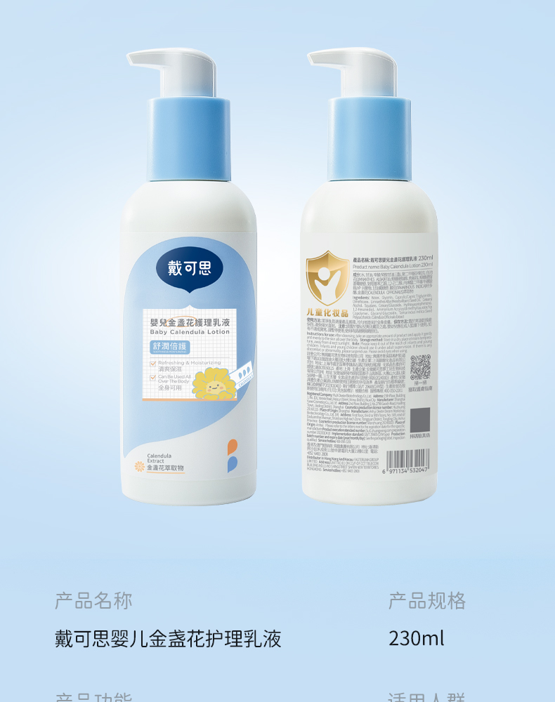港版戴可思Dexter 婴儿金盏花护理乳液230ml