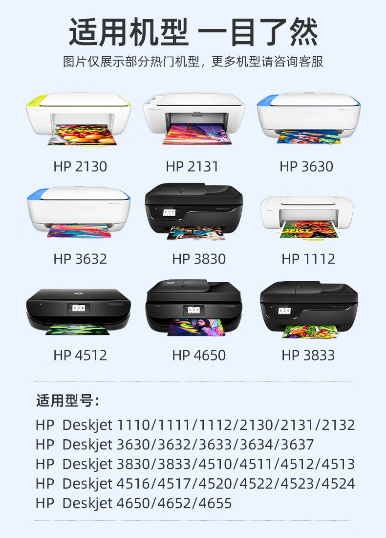 绘威HW-63XL黑彩墨盒套装 适用惠普HP 1111 2130 2131 3630 3632 3830 4520 4650 5740打印机墨盒 港版
