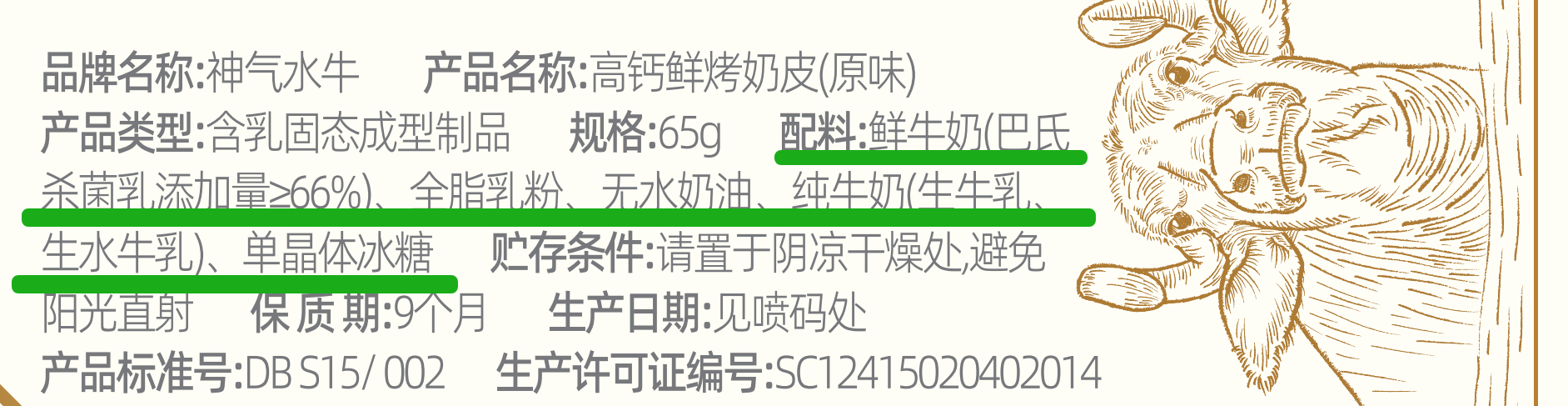神气水牛鲜乳高钙烤奶皮,不添加香精色素防腐剂,停不下来的鲜烤奶皮!65g/盒