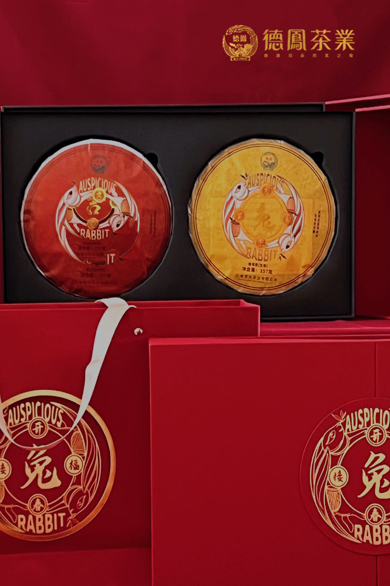 德凤2023年【吉兔呈祥】 普洱双饼纪念礼盒,一年一岁一典藏