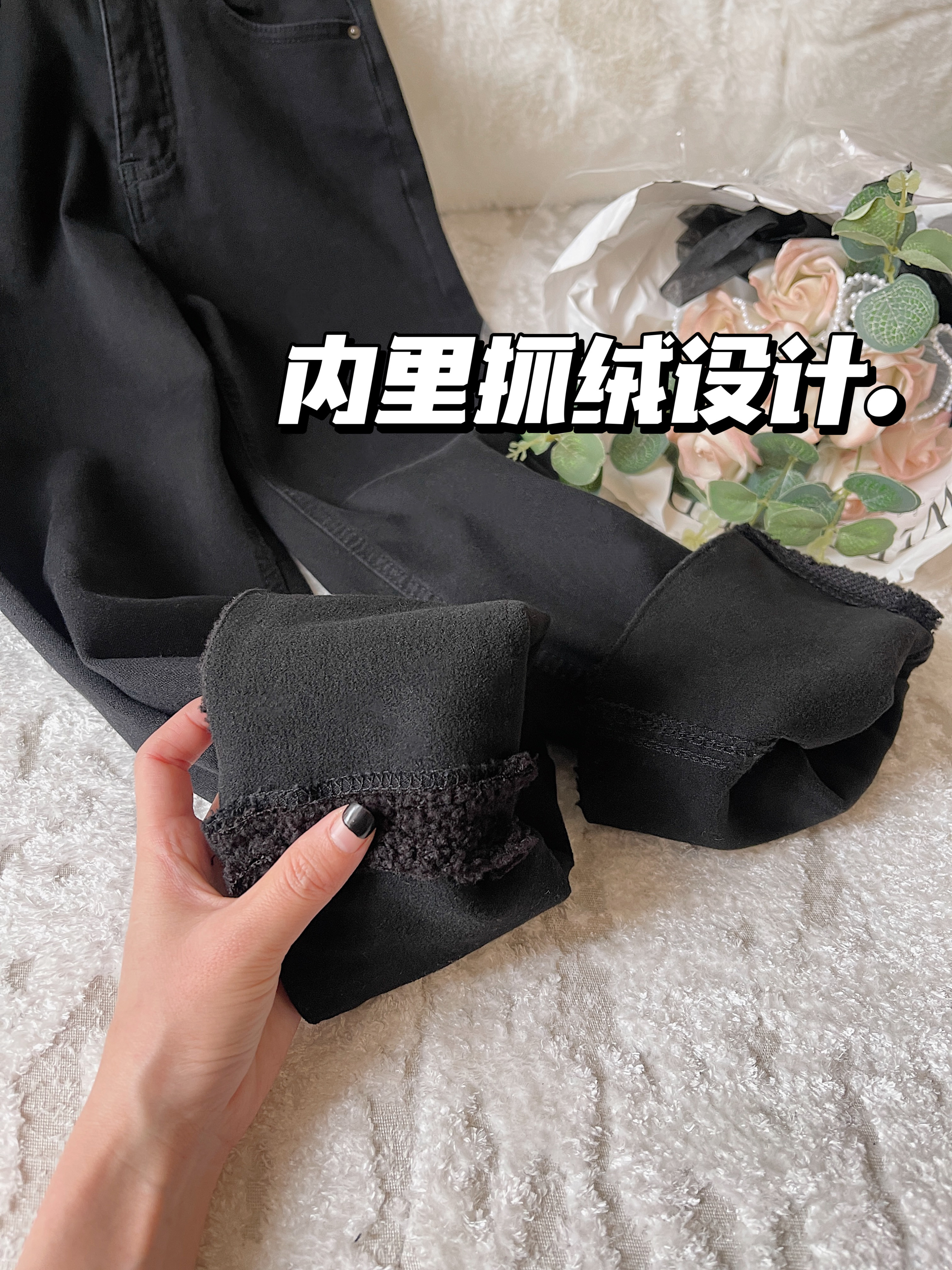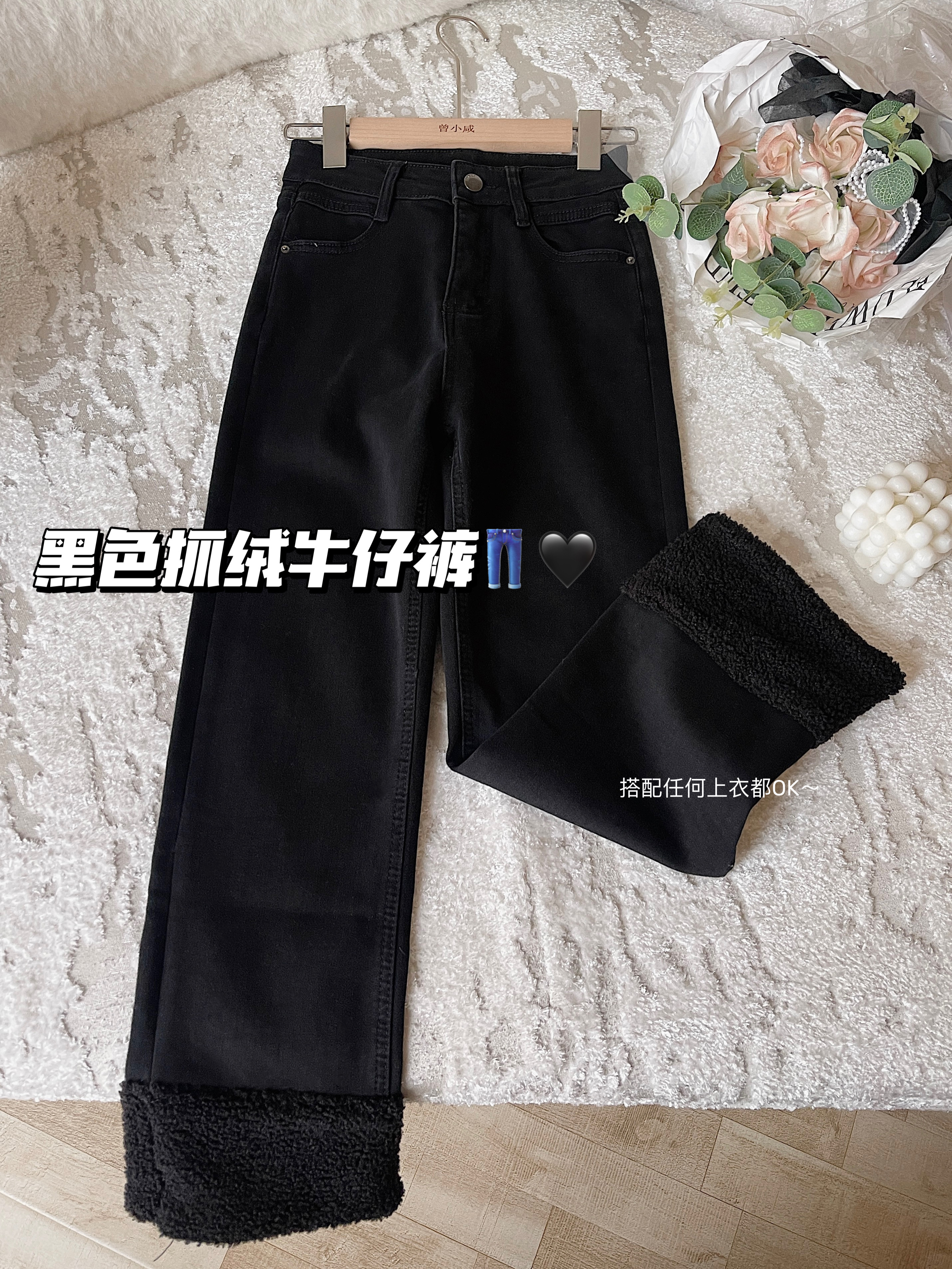 <曾小咸推荐> 黑色抓绒牛仔裤
