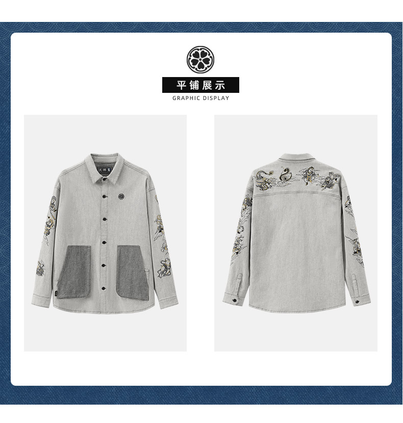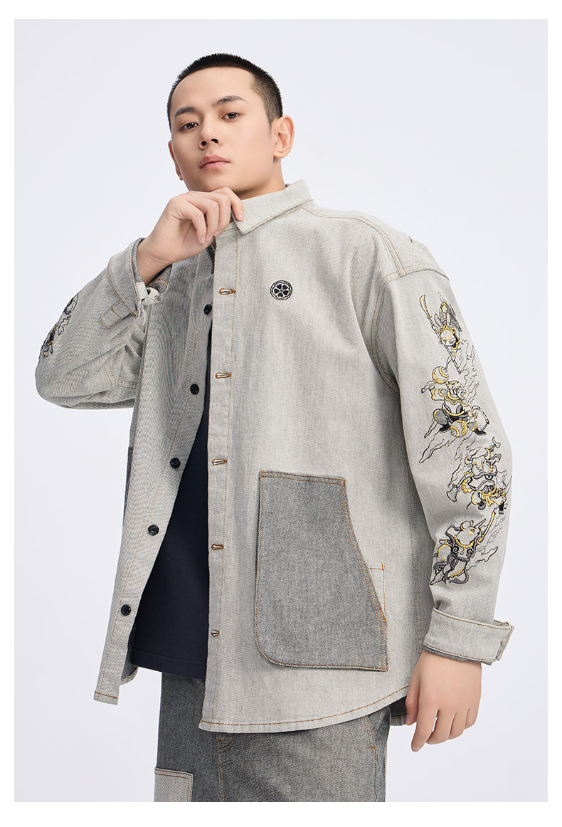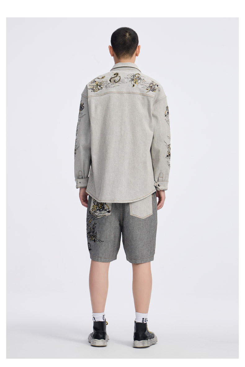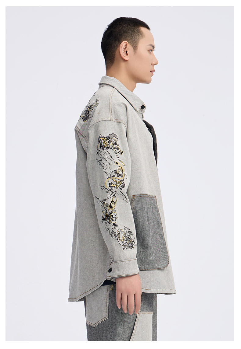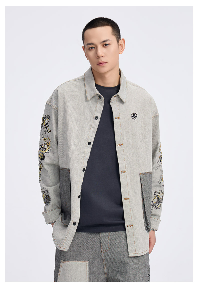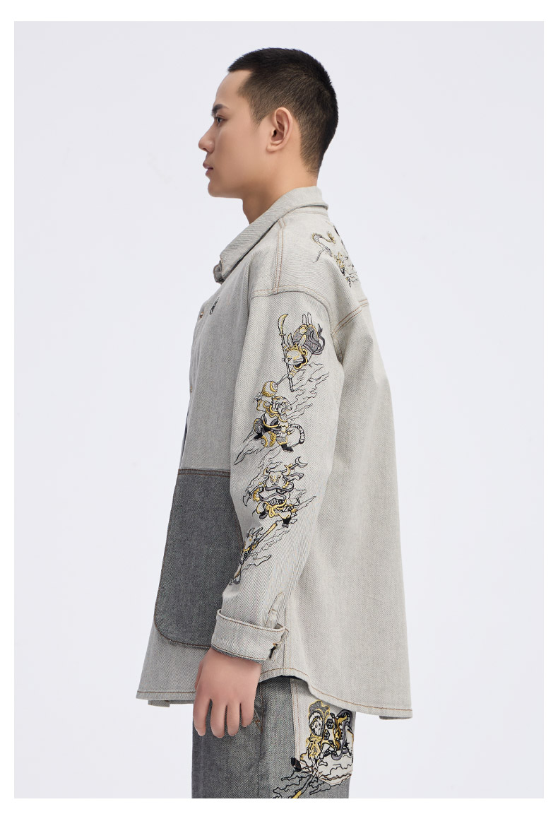 ONIARAI/鬼洗25春夏新品泥棒蓝十二神绣花牛仔男式衬衫 N140029