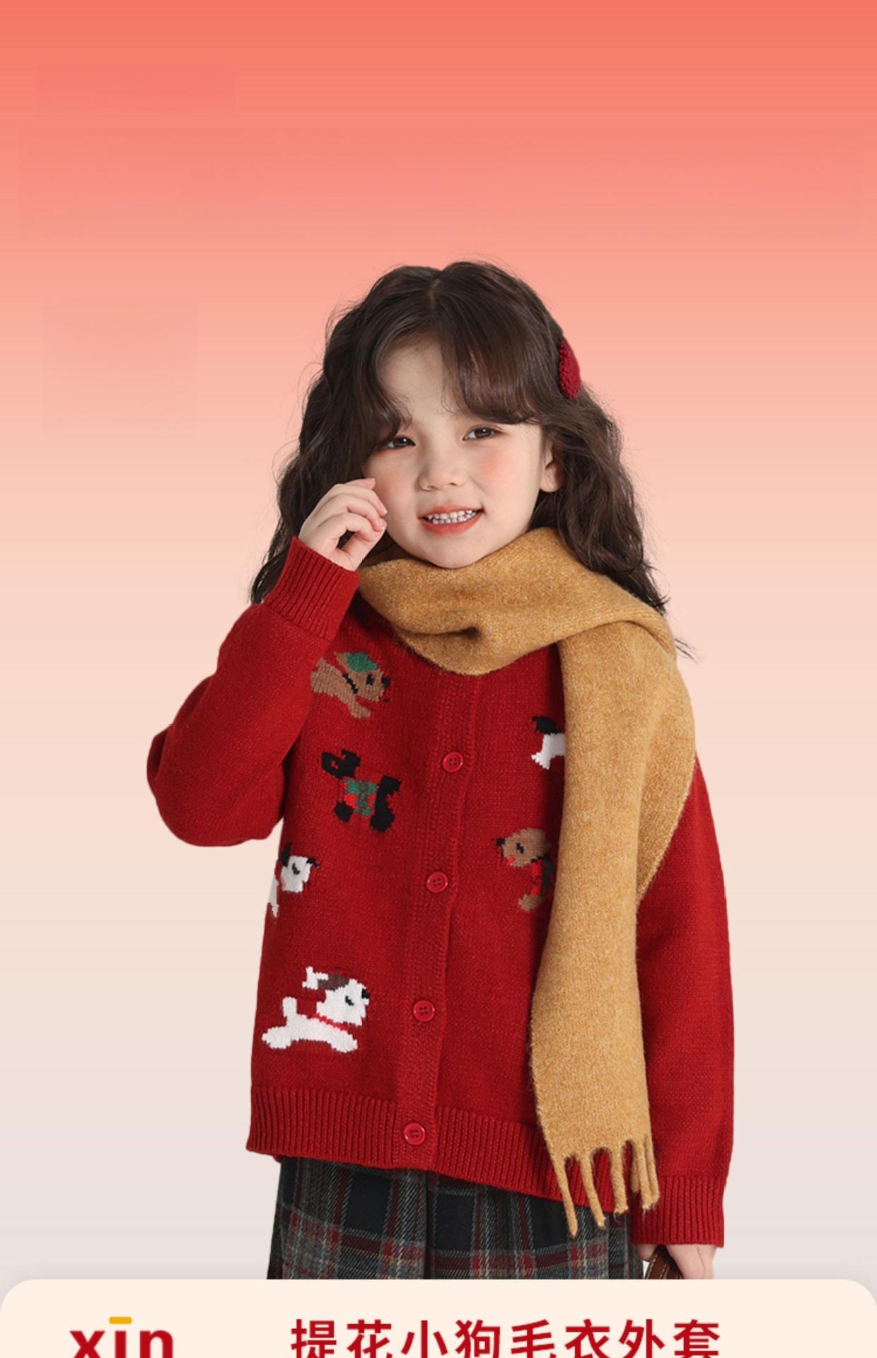 【洋气加厚针织毛衣】2025新款儿童加厚毛衣 拜年服 红色新年秋冬卡通女童针织开衫 外套潮