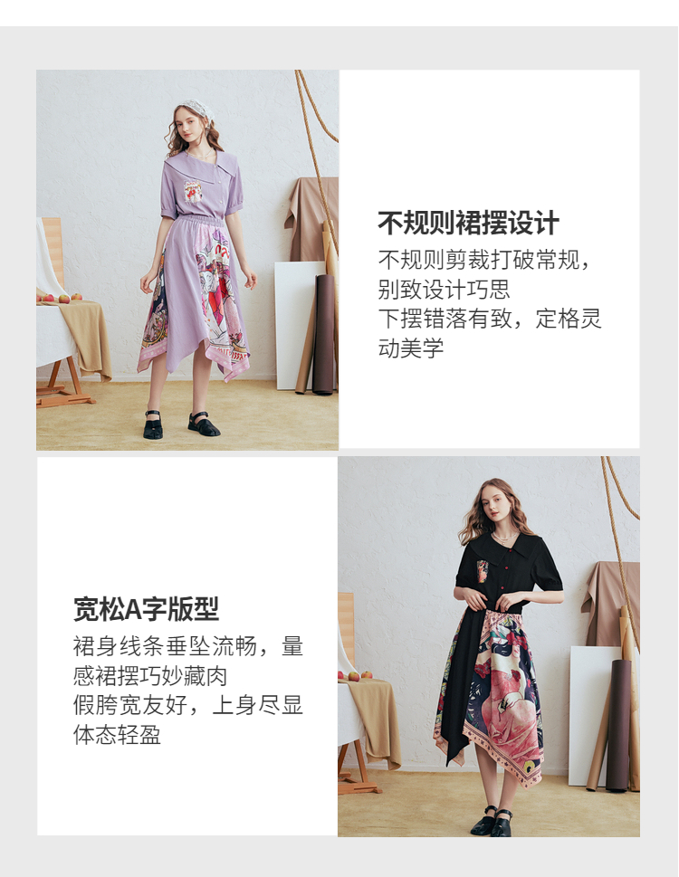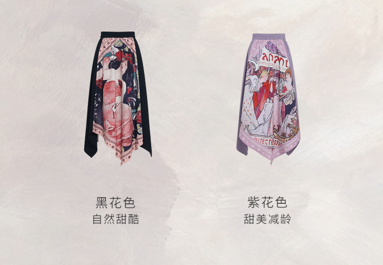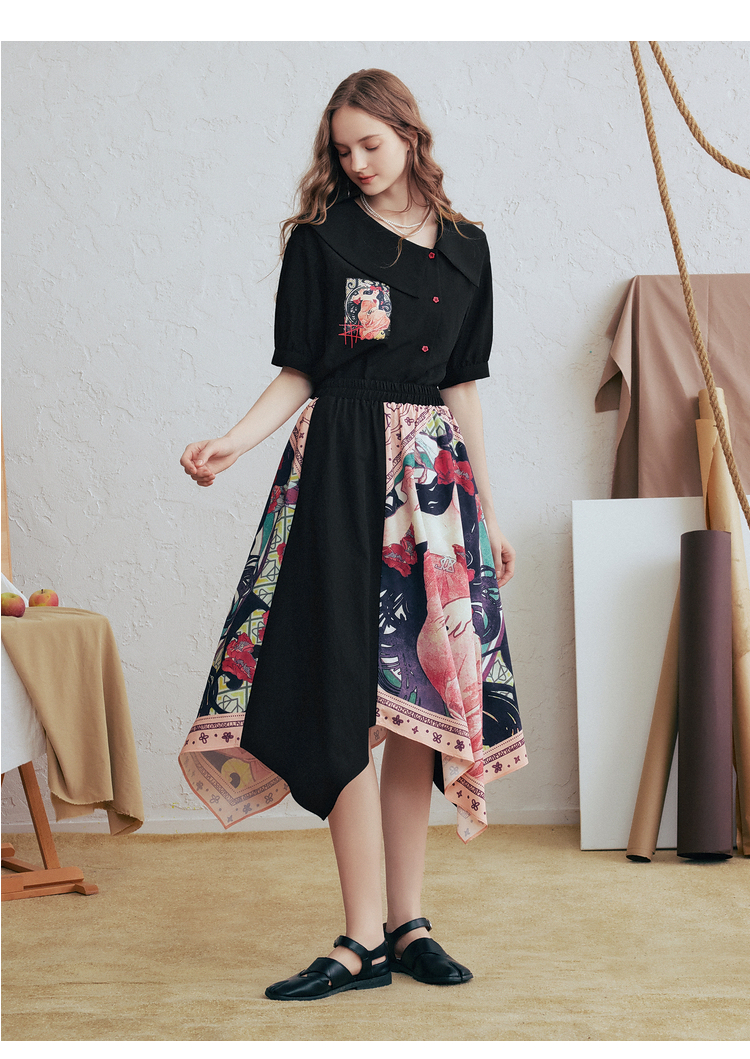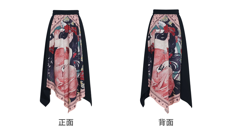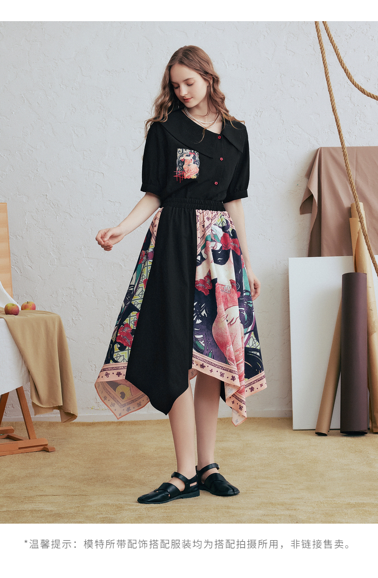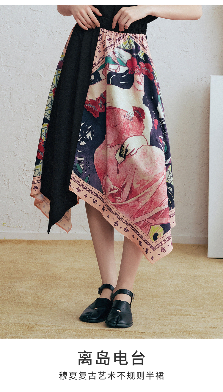 两三事 离岛电台 2026春季新款复古印花拼布不规则半身裙飘逸长裙