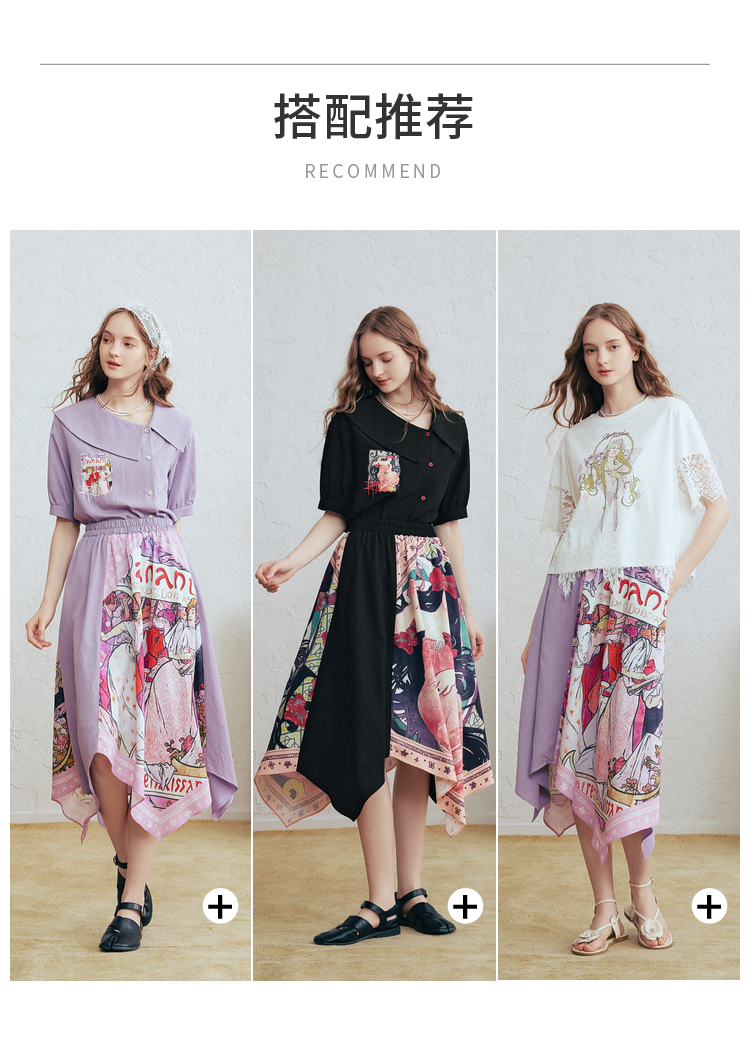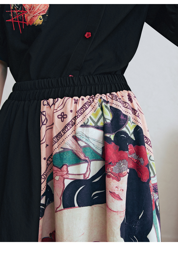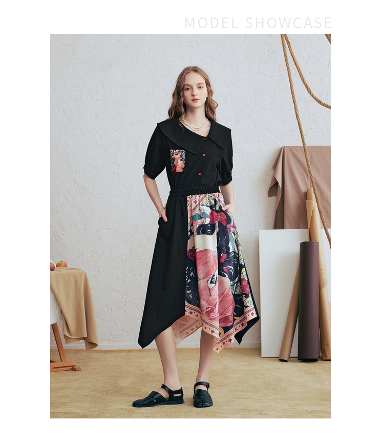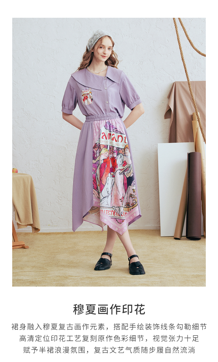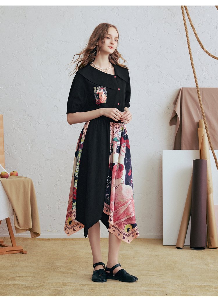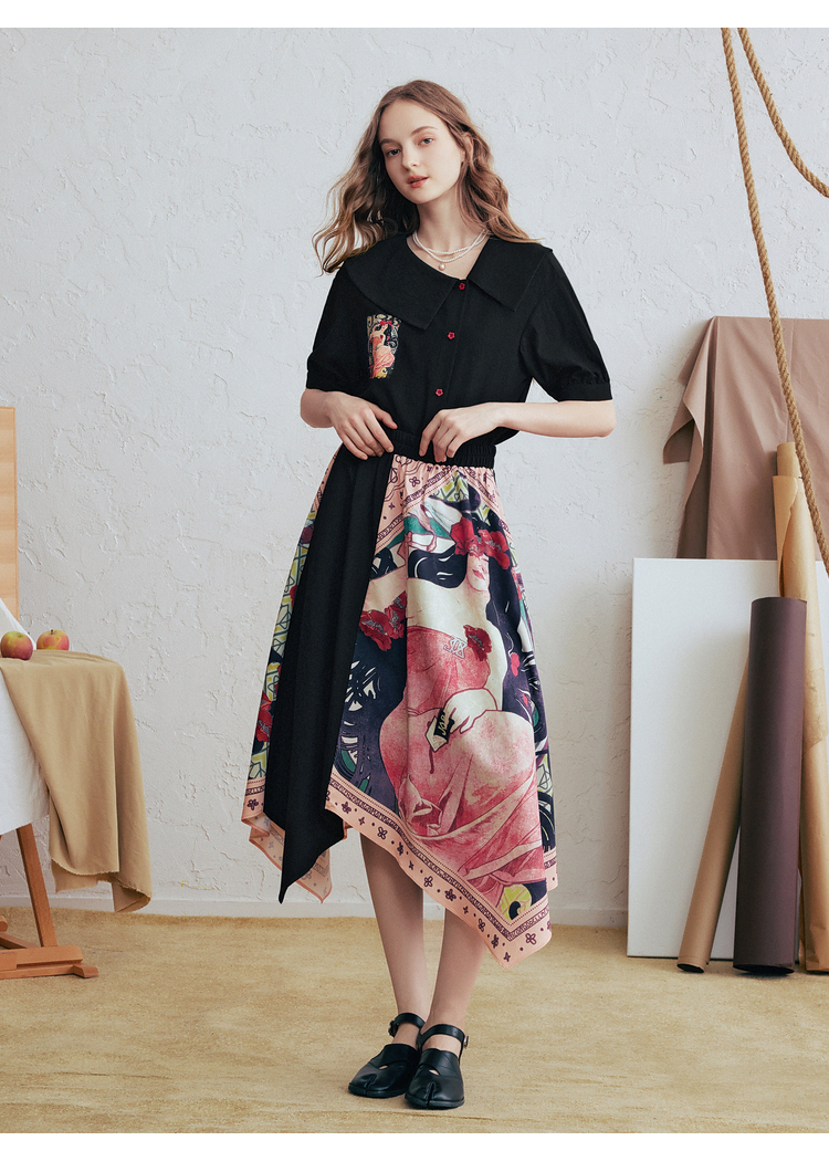 两三事 离岛电台 2026春季新款复古印花拼布不规则半身裙飘逸长裙
