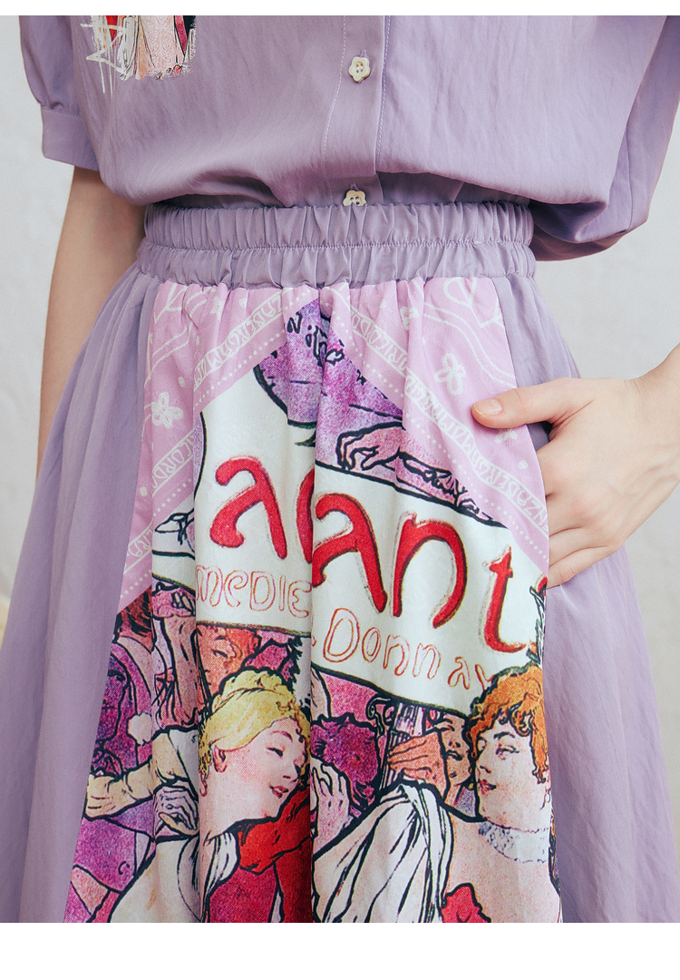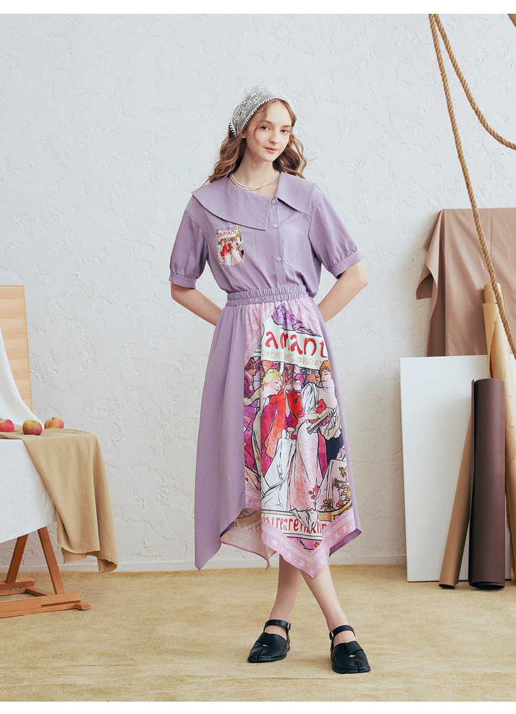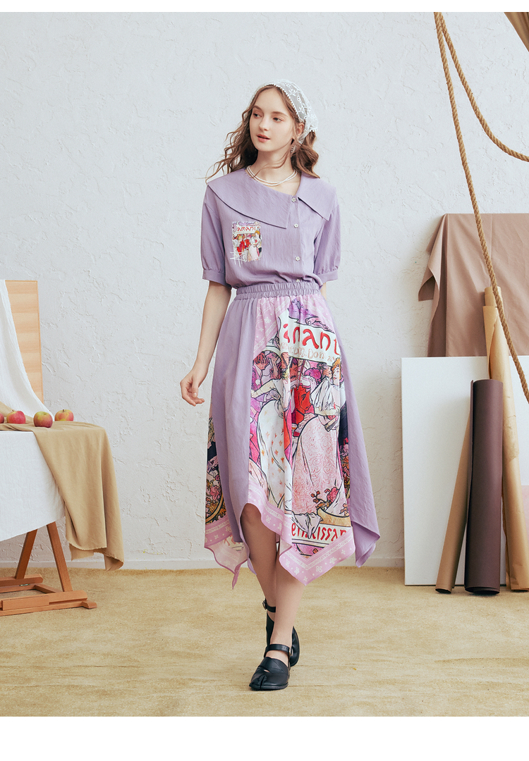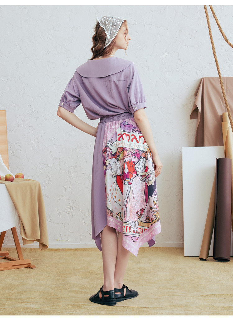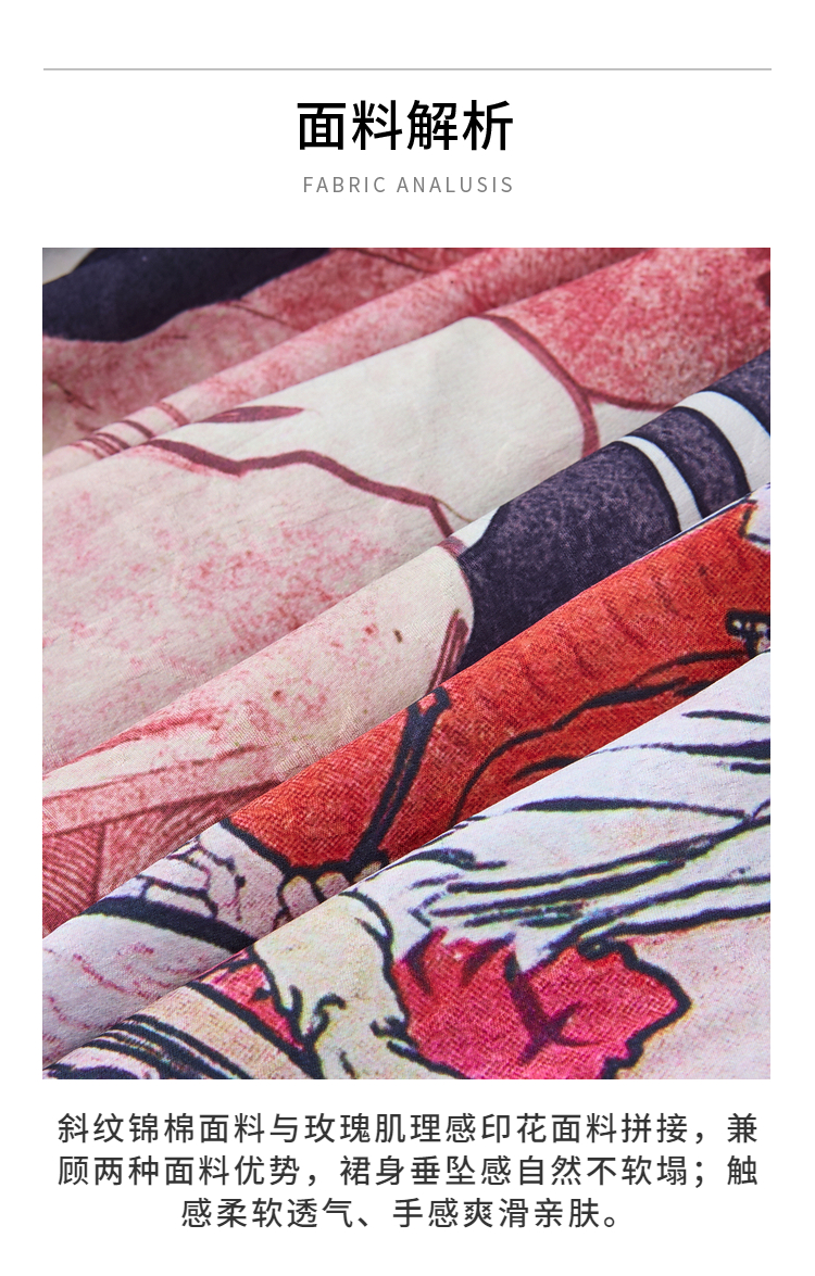 两三事 离岛电台 2026春季新款复古印花拼布不规则半身裙飘逸长裙