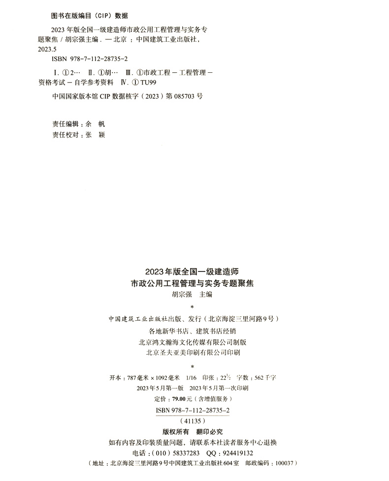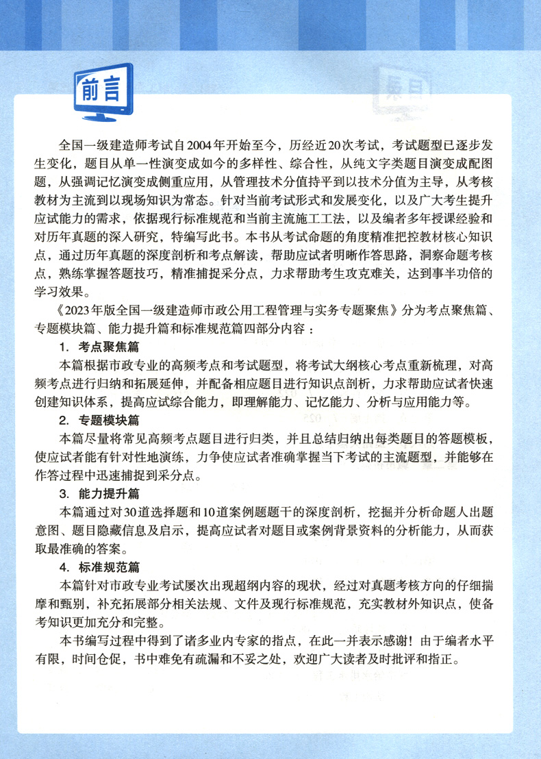 书名:2023年版全国一级建造师市政公用工程管理与实务专题聚焦